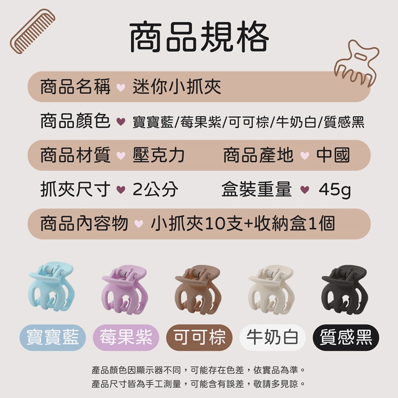 迷你小抓夾 一盒10入 小髮夾 小抓夾 磨砂小抓夾 高馬尾抓夾 南瓜小抓夾 高馬尾神器 磨砂瀏海夾 迷你小號髮夾 爪夾