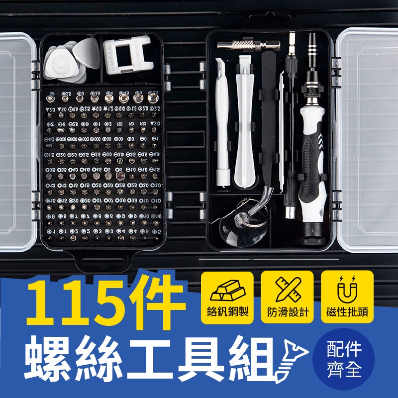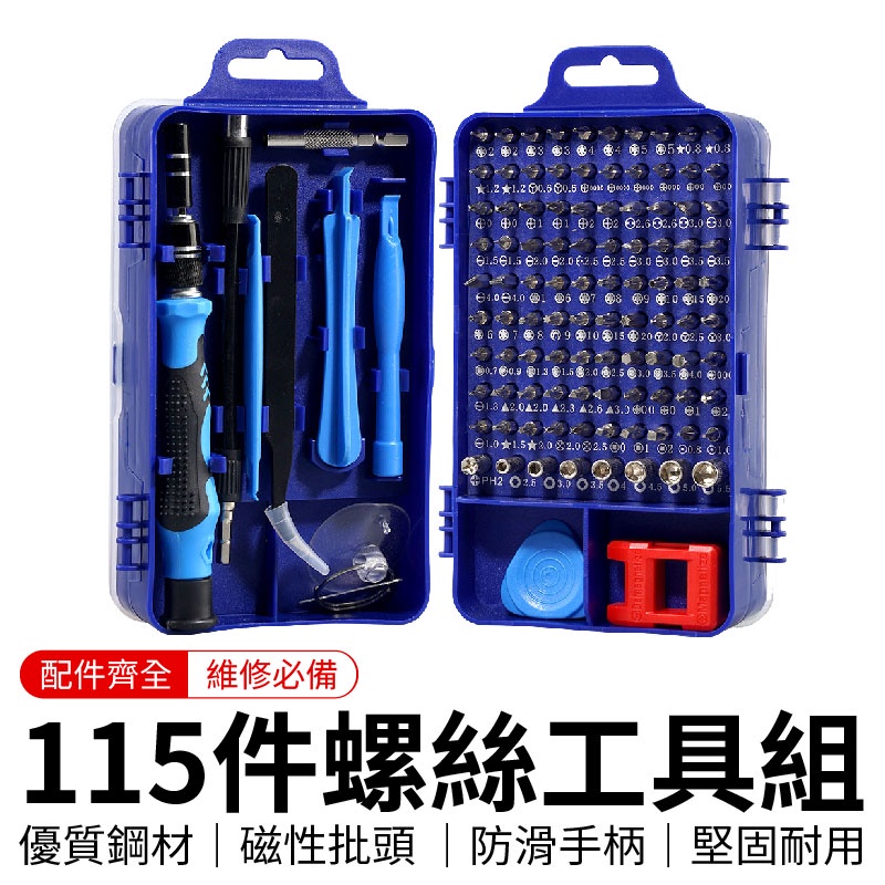 115件螺絲工具組 115合1螺絲刀套裝 螺絲刀 螺絲套組 鉻釩鋼螺絲刀 多功能起子 鐘錶維修組 電腦維修組 儀器維修