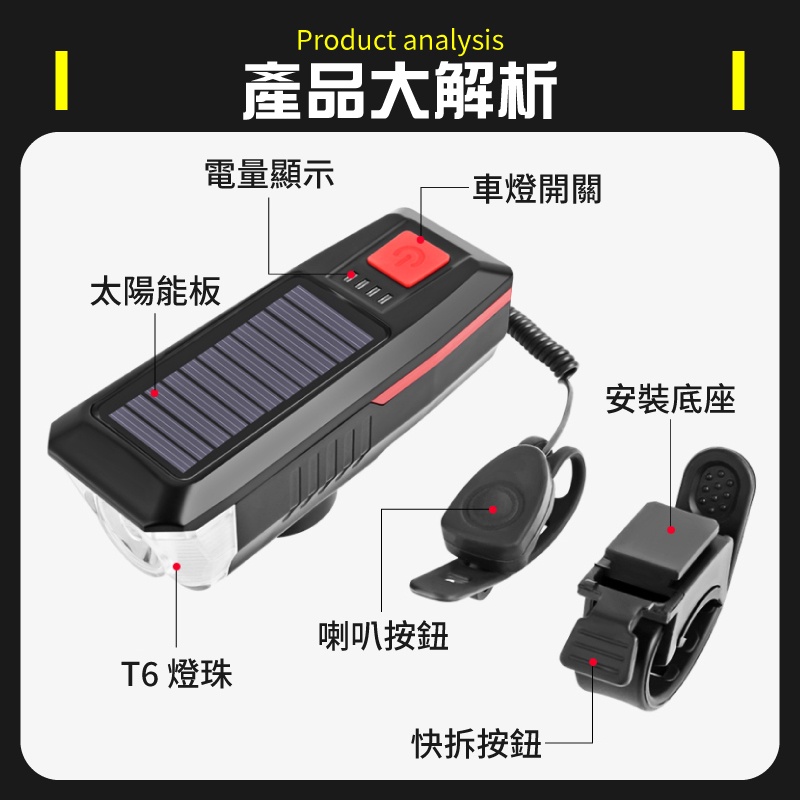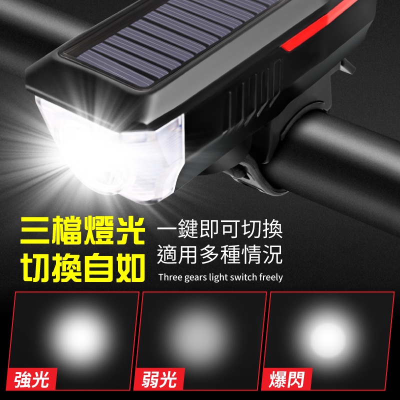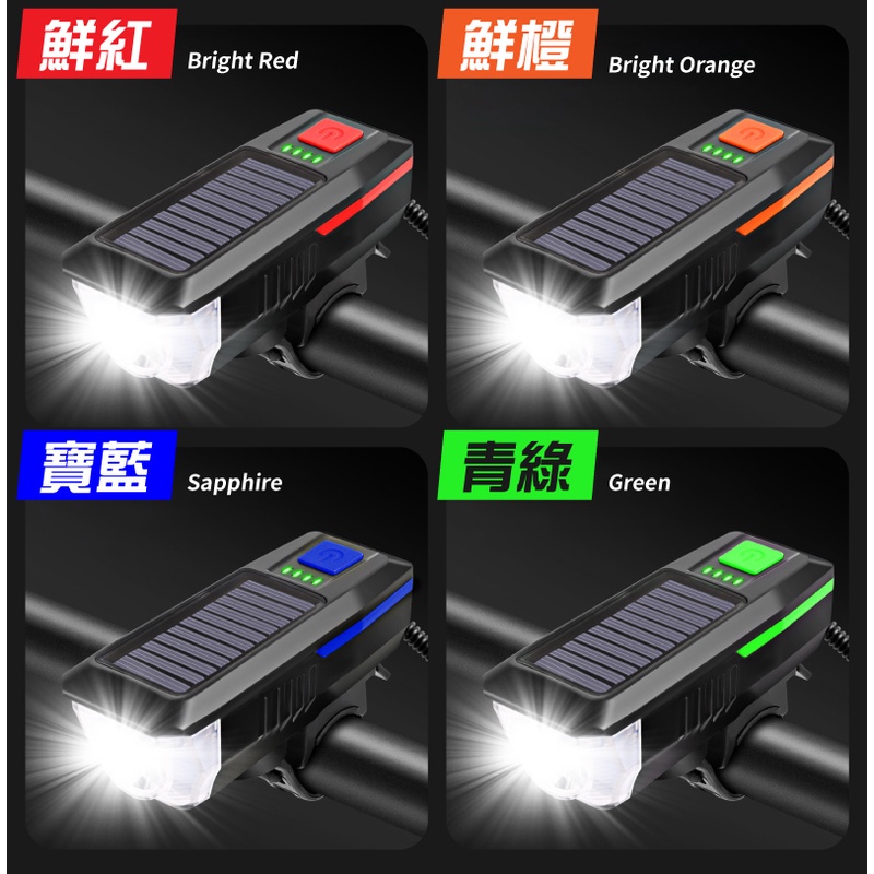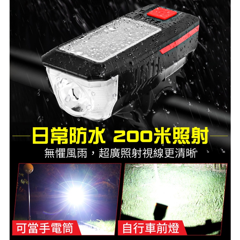 200米照射 大分貝 防水 太陽能燈 自行車喇叭燈 自行車手電筒 自行車燈 腳踏車燈 自行車前燈 自行車車燈 單車燈