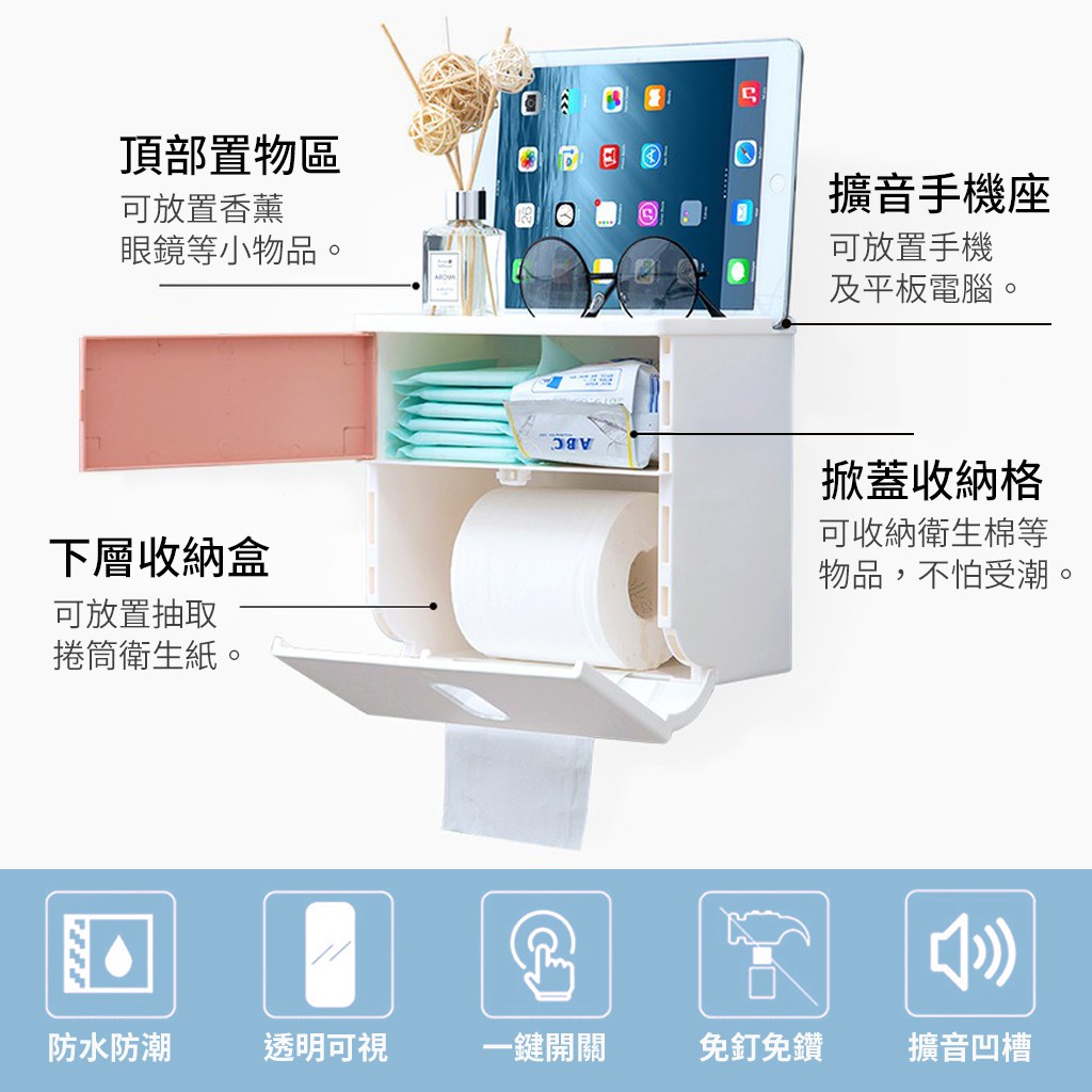 北歐風壁掛紙巾盒 衛生紙置物架 廁所置物架 浴室置物架 衛生紙盒 面紙盒 衛生紙架 紙巾架 送隱形掛勾