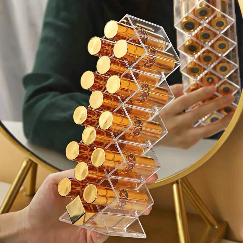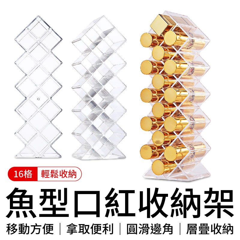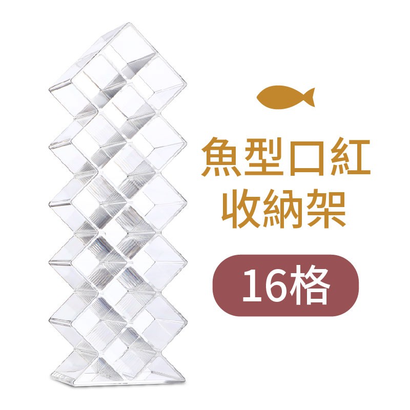 魚型口紅收納架 化妝品唇膏架 透明置物架 魚骨口紅架 口紅收納盒 多格收納盒 口紅整理 口紅架 收納架 16格 口紅