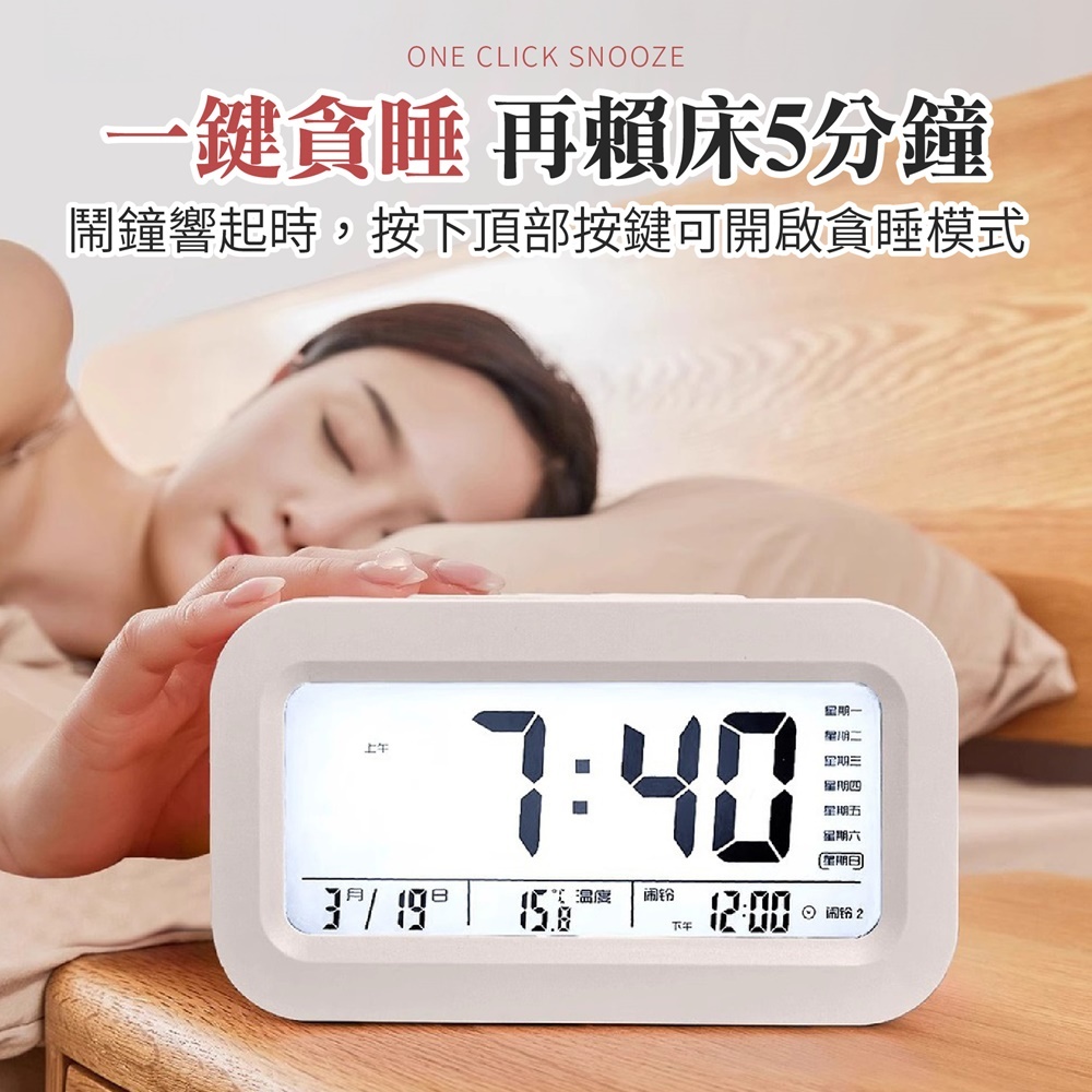 貪睡聰明鐘 多功能智能懶人鬧鐘 多功能電子鬧鐘 電子LED夜光 光感床頭鬧鐘 靜音時鐘 鬧鈴 智慧鬧鐘 貪睡鐘