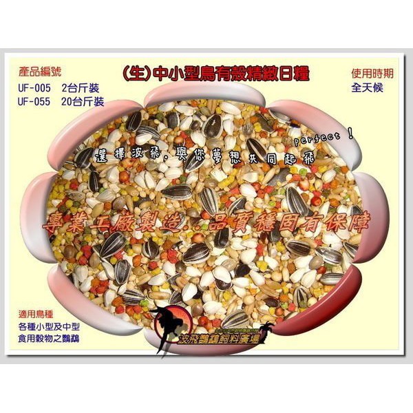 波飛鸚鵡飼料《UF-005/UF005A-中小型鳥有殼精緻日糧(生)-2/5台斤》鸚鵡飼料/中小型鸚鵡/有殼生料/鳥飼料