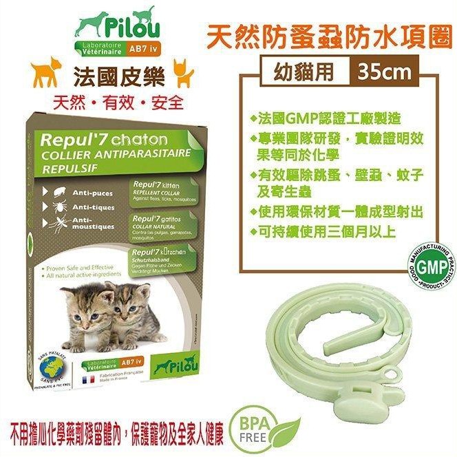 法國皮樂Pilou《天然防蚤驅蝨防蚊項圈-幼貓用-長35cm》GMP-歐盟認證-除蚤-預防跳蚤壁蝨防蚊〔李小貓之家〕
