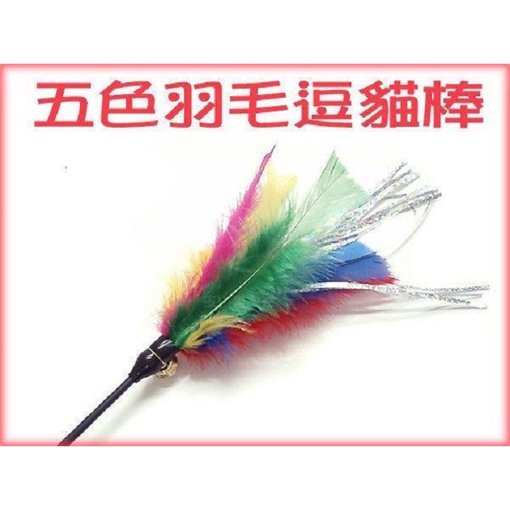 超級好玩的《五色羽毛逗貓棒》-台灣製-有雷射閃光花紙-超吸引貓咪-〔李小貓之家〕