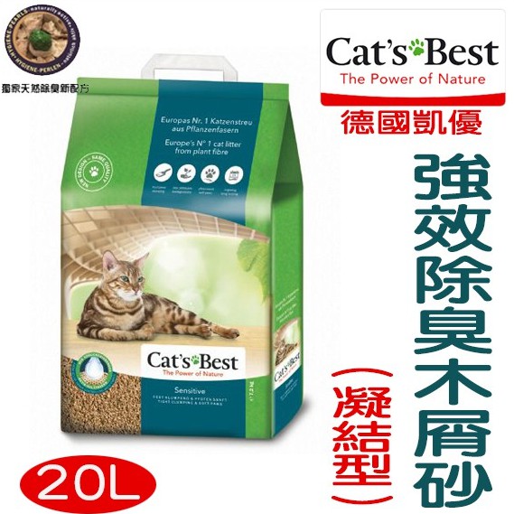 德國CATSBEST《凱優-強效除臭凝結木屑砂-20L》添加除臭顆粒-適用一般單層貓便盆〔李小貓之家〕