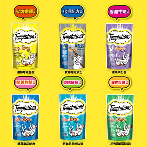 Temptations 喵愛餡 貓點心-6種口味-75g/60g/包 全球銷售第一的貓點心/貓零食/美味點心/貓餡餅