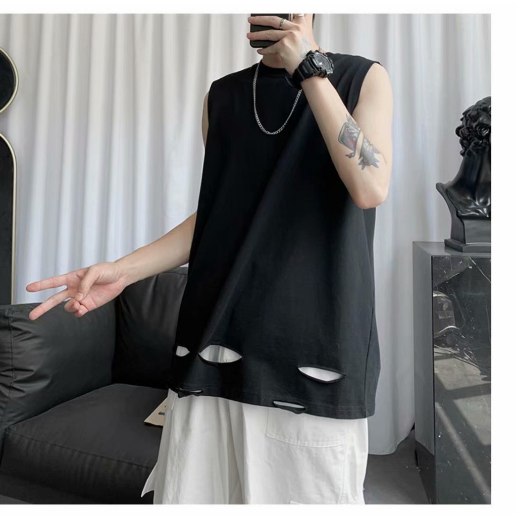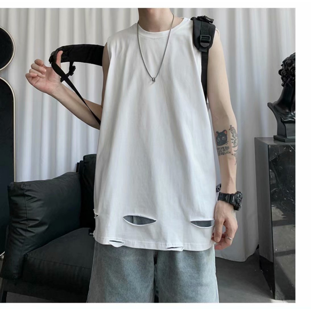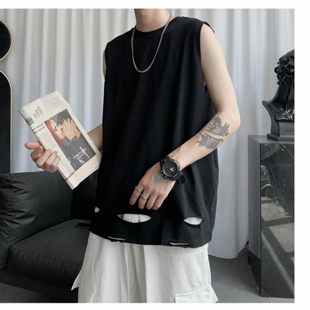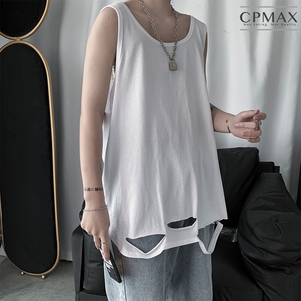 【CPMAX】刀割破洞背心 背心男 大帝T恤 潮牌無袖破洞背心 男長版背心 無袖背心 純色背心 割破背心【VE23】
