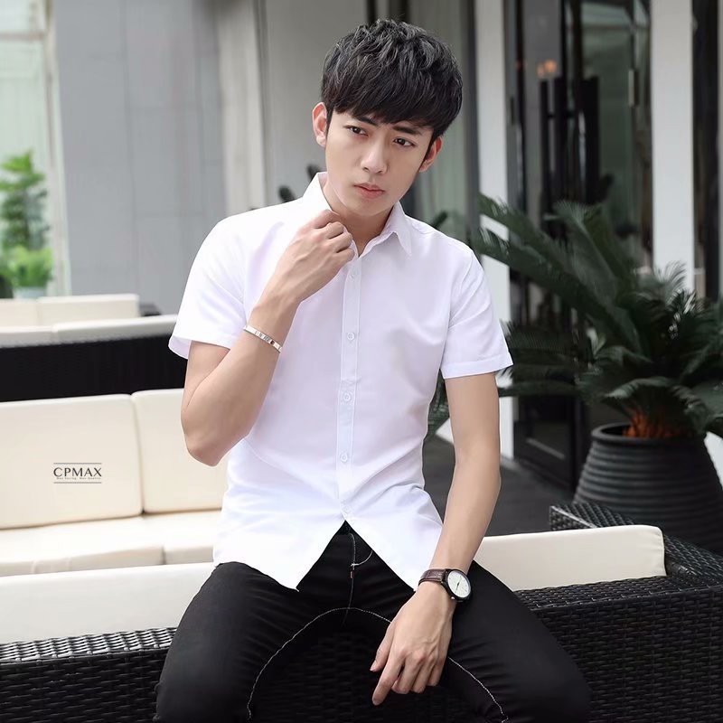 【CPMAX】素面短袖襯衫 襯衫 韓版襯衫 翻領純色上班襯衫 男襯衫 短袖襯衫 素色襯衫 夏天襯衫 修身襯衫【B24】