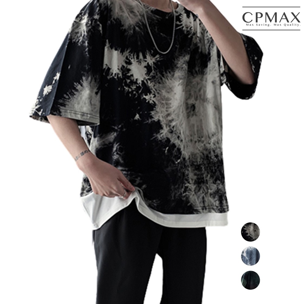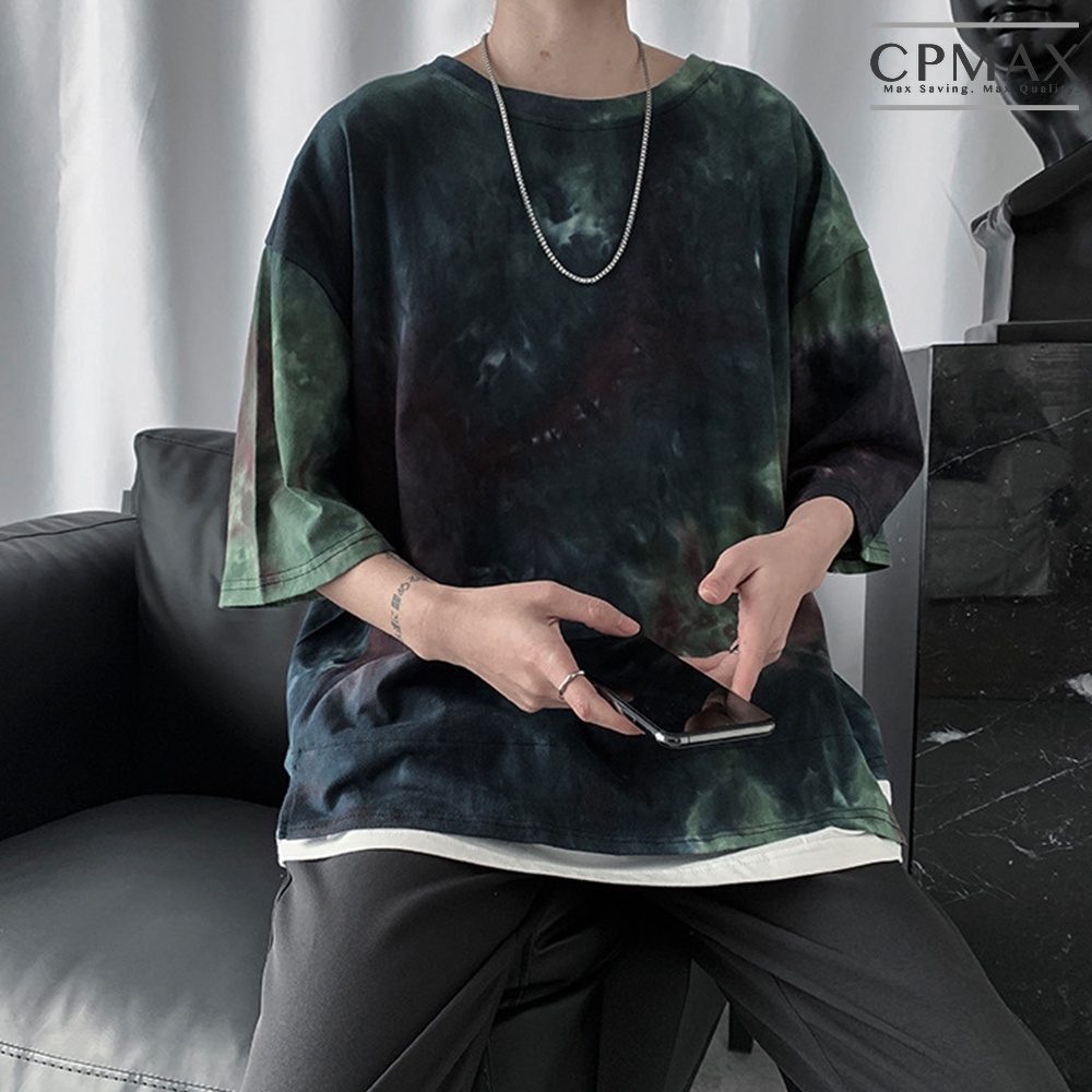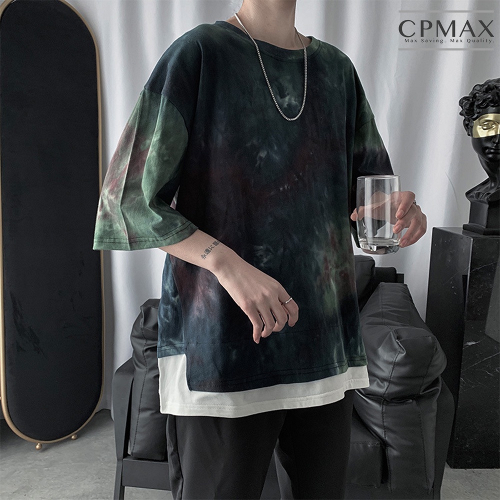 【CPMAX】韓系潮牌假兩件迷彩五分袖T恤 寬鬆T恤 Oversized 短T T恤男 墨染T恤 短袖T恤男【T194】