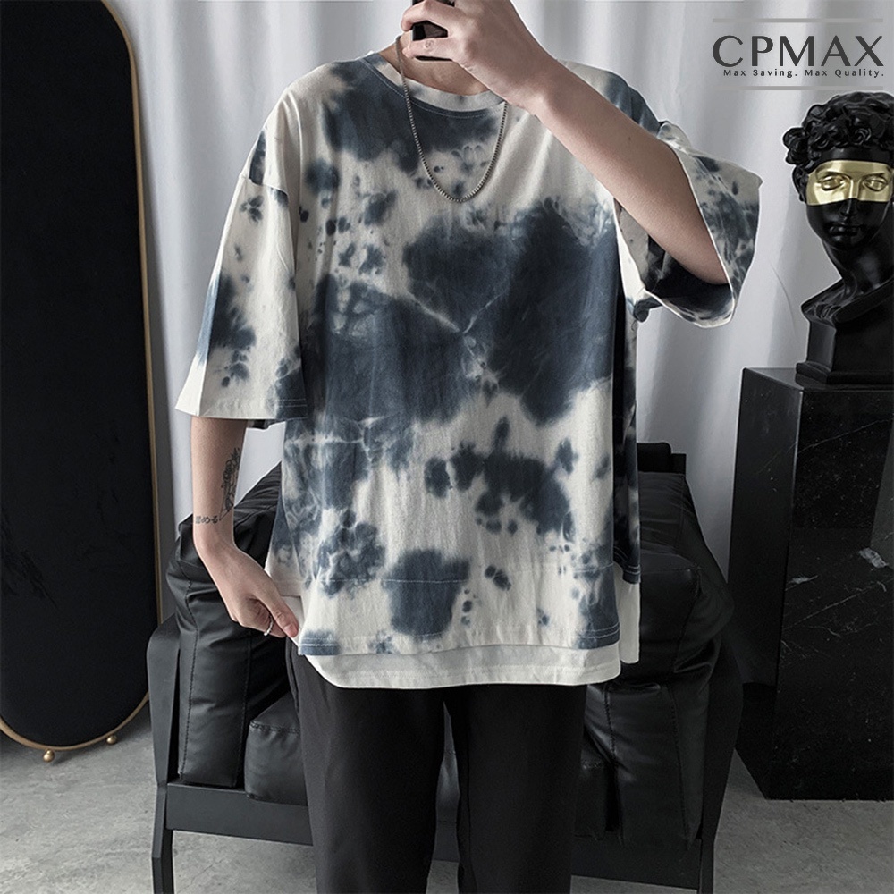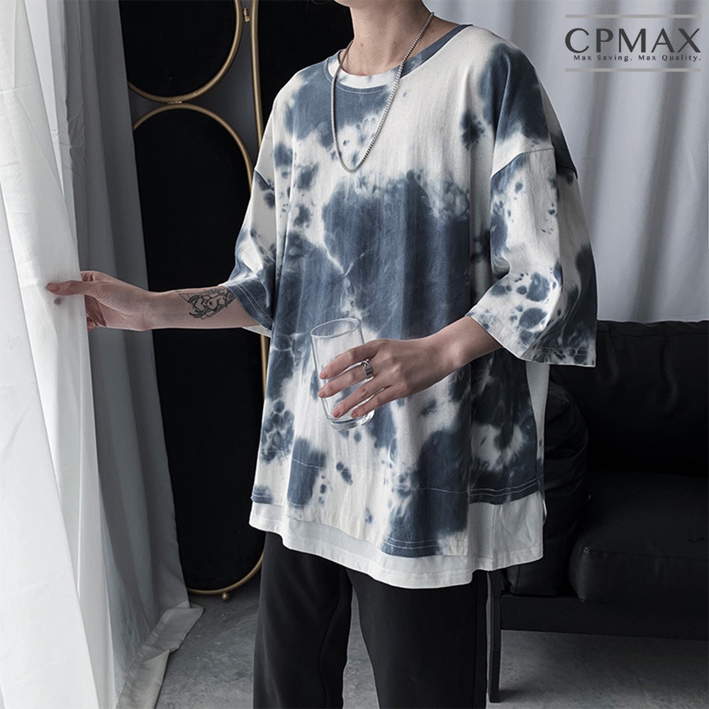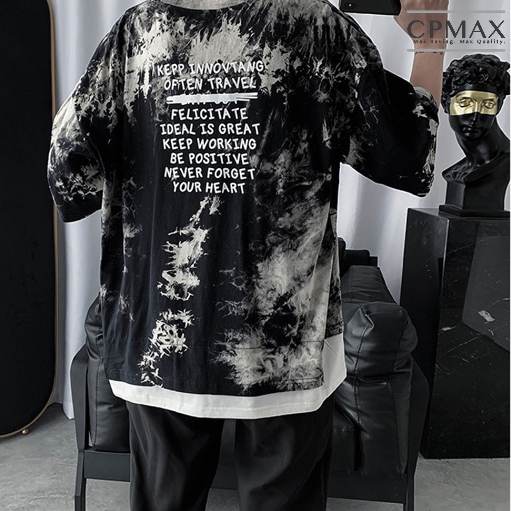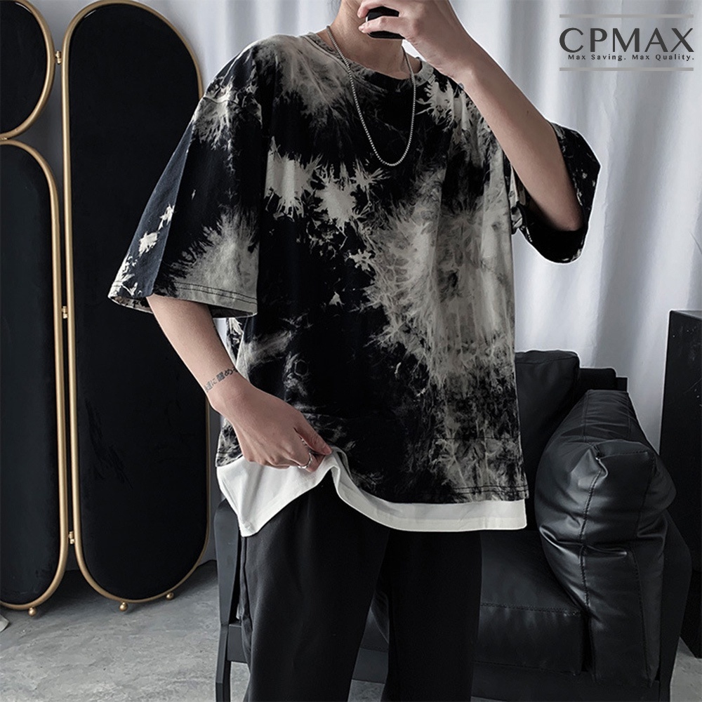 【CPMAX】韓系潮牌假兩件迷彩五分袖T恤 寬鬆T恤 Oversized 短T T恤男 墨染T恤 短袖T恤男【T194】