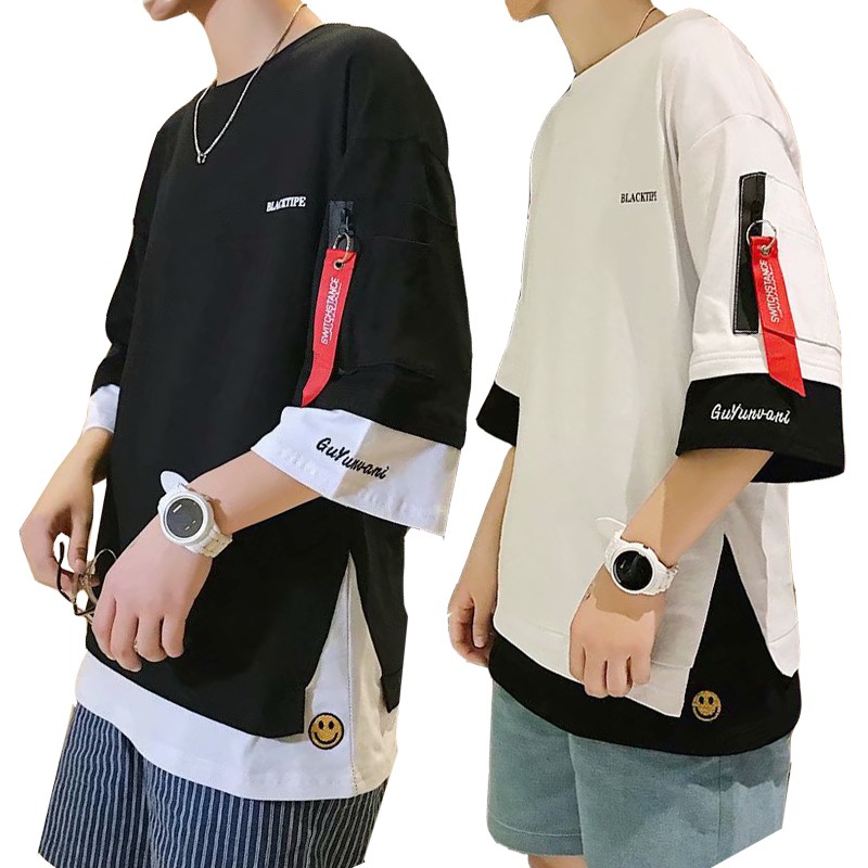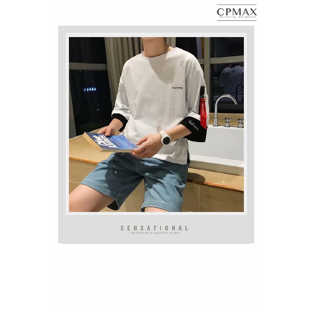 【CPMAX】短袖 男短T 潮T 潮牌短T 男T桖 假兩件Oversized飄帶五分短T 寬鬆短T 五分袖短T【T93】