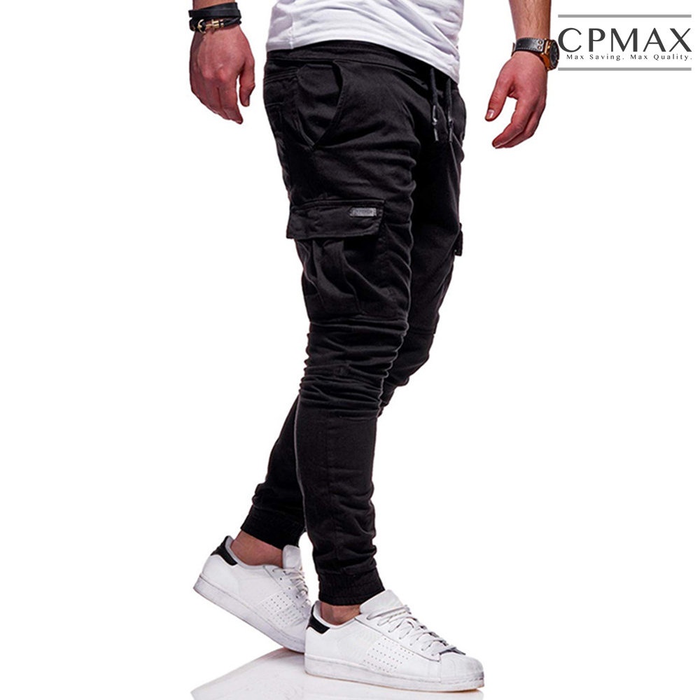 【CPMAX】冬季立體貼袋小腳褲 繫繩鬆緊運動褲 小腳休閒褲 多口袋休閒褲 束腳工裝褲 多口袋工裝褲 長褲男【P115】