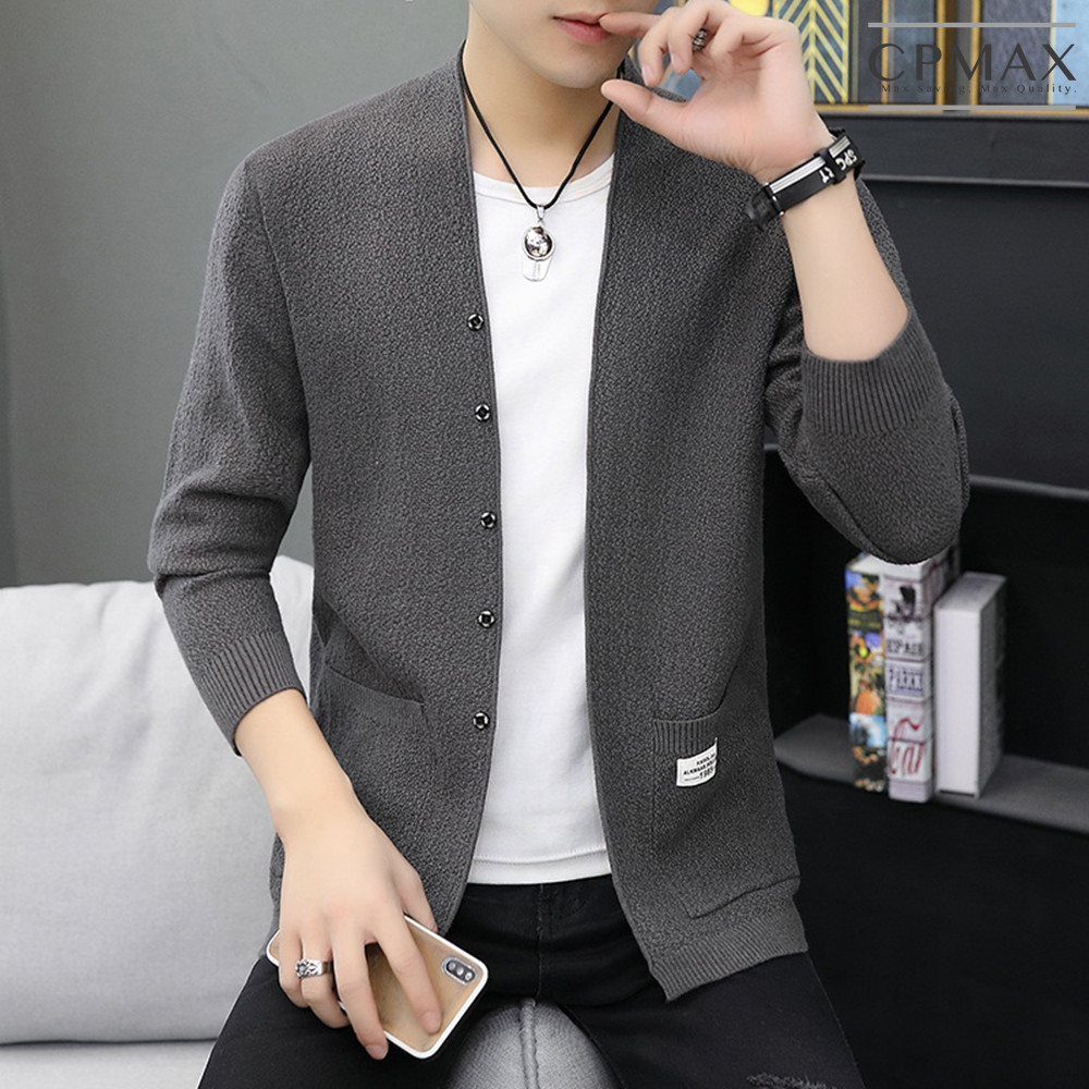 【CPMAX】薄款毛衣外套 男毛衣外套 休閒風格針織衫 男針織外套 男長袖針織毛衣外套 修身針織外套 帥氣【C126】