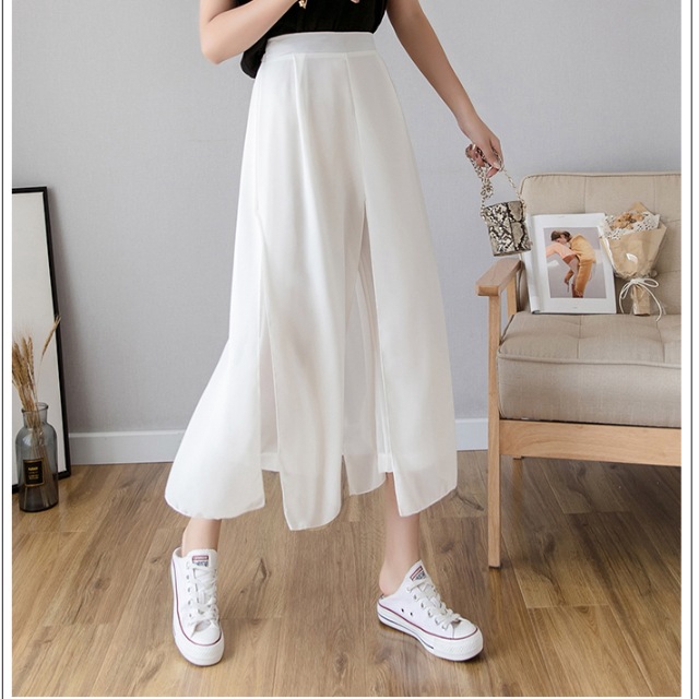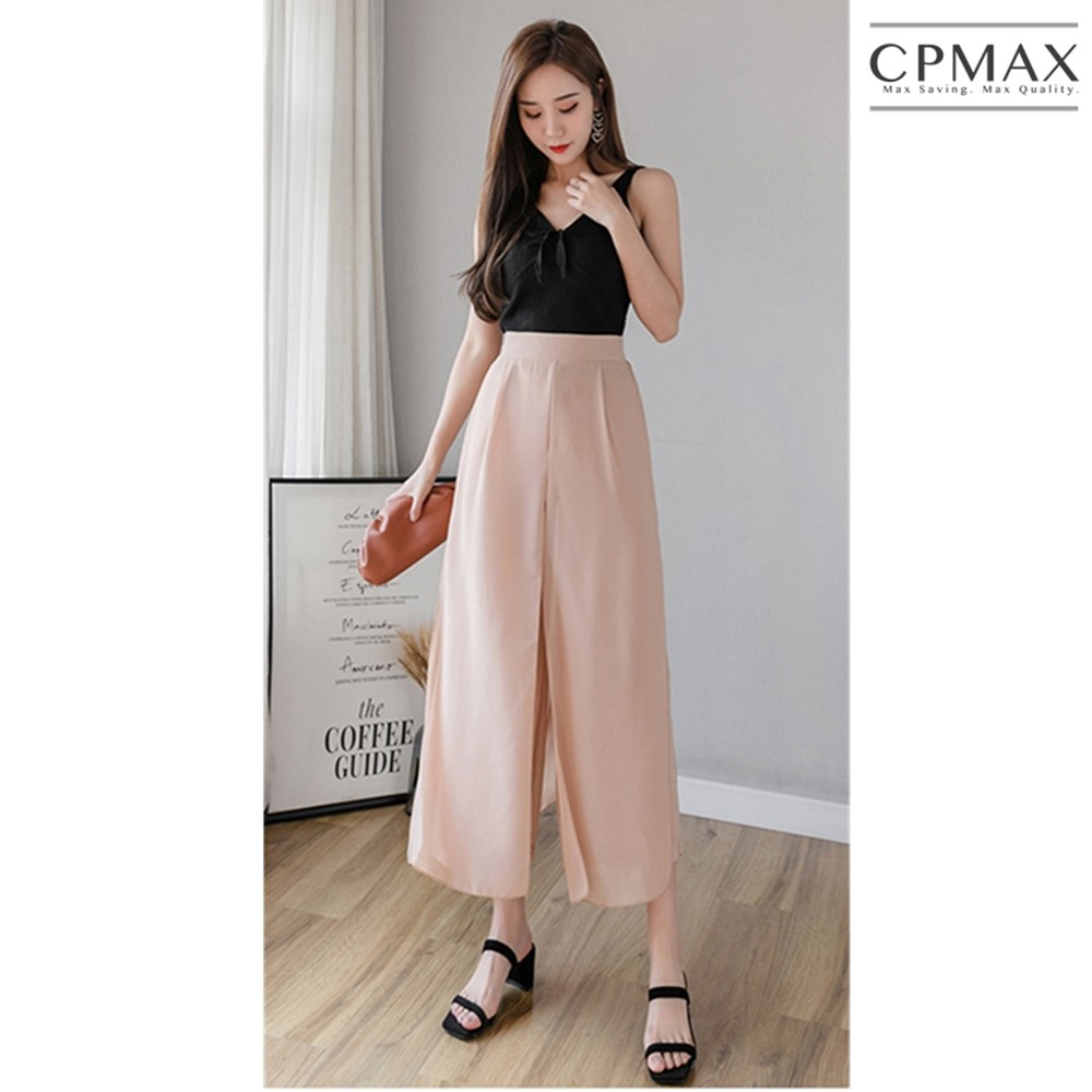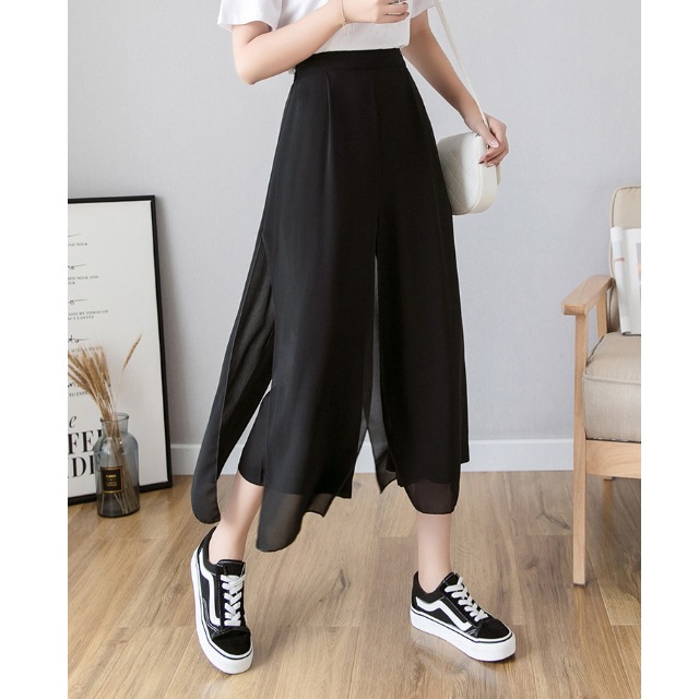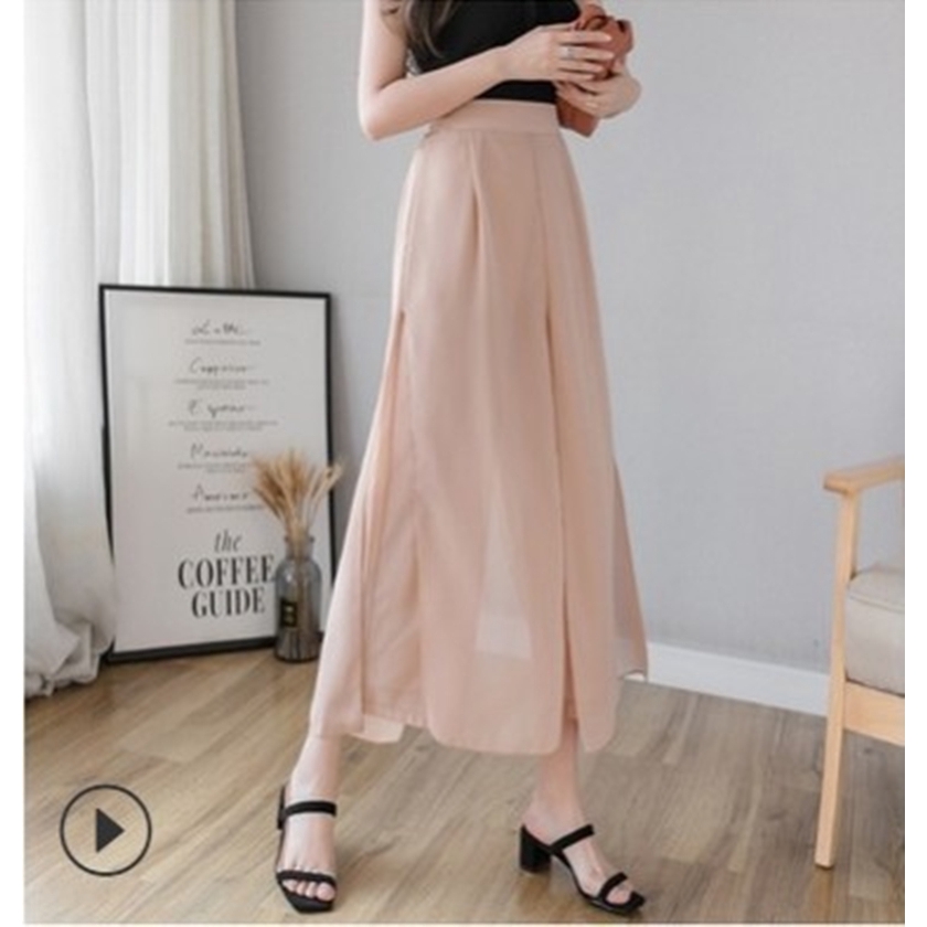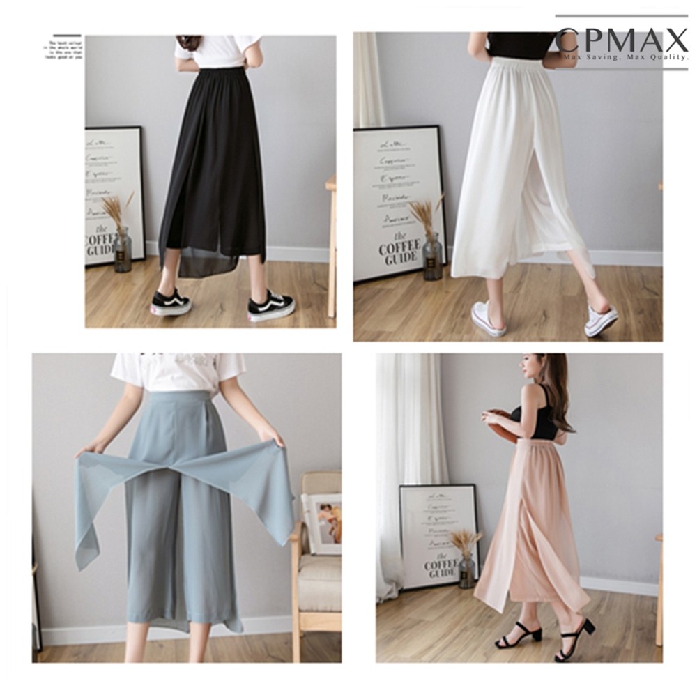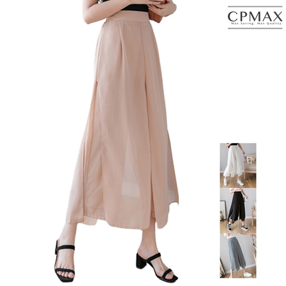 【CPMAX】韓系雪紡假兩件寬鬆褲 九分寬鬆褲裙 鬆緊帶伸縮 寬褲女 褲裙 九分褲女 韓系雪紡 假兩件褲裙女【W55】