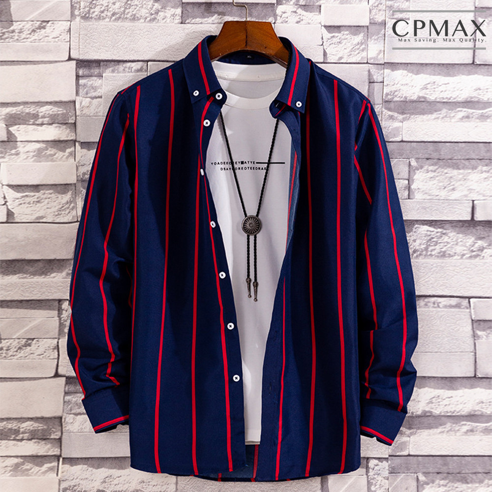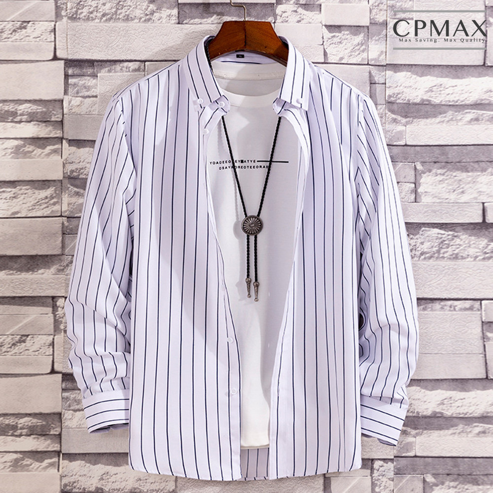 【CPMAX】日系修身百搭襯衫 長袖襯衫 條紋襯衫 男生襯衫 商務襯衫 修身襯衫 上班襯衫 韓系潮流 正式襯衫【B68】