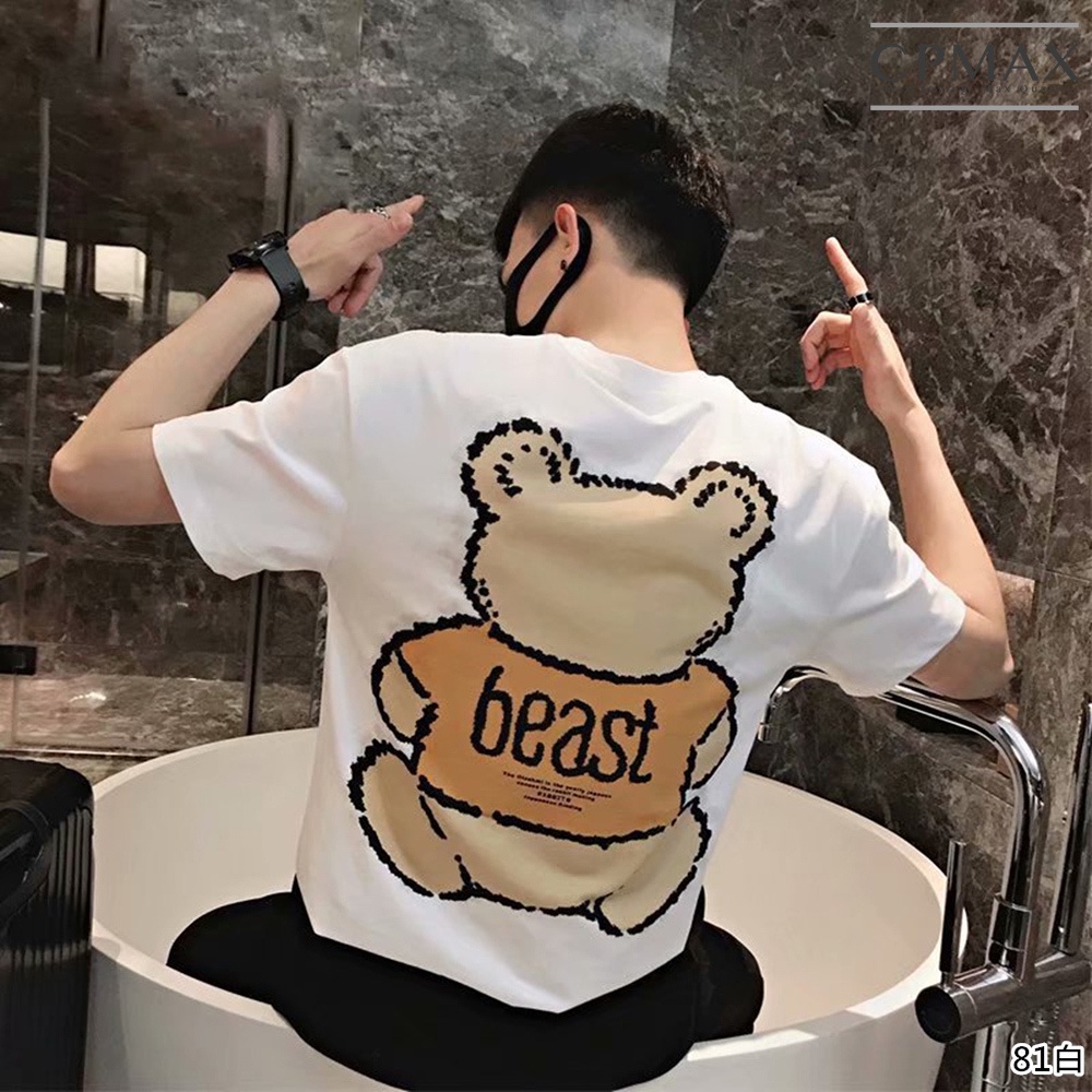 【CPMAX】熊熊短袖潮T 可愛小熊短T 古錐熊熊情侶款短袖上衣 印花小熊短T 短袖T恤男 情侶寬鬆T恤【T175】