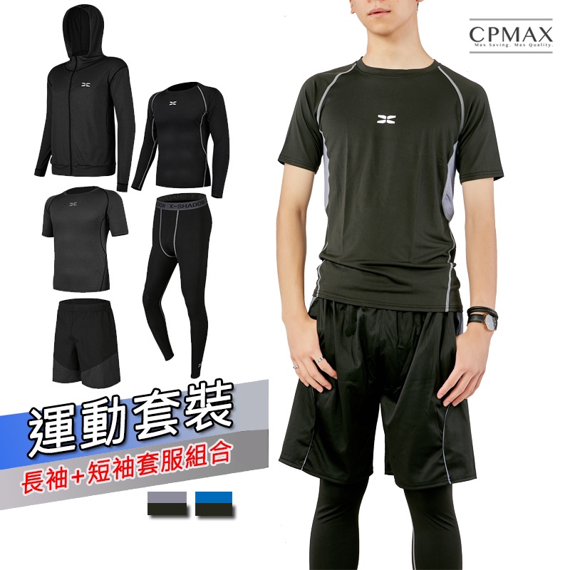 【CPMAX】男速乾緊身運動套裝 健身服 運動外套 運動褲 五件套 緊身運動衣 運動套裝 訓練服 戶外運動服【O93】