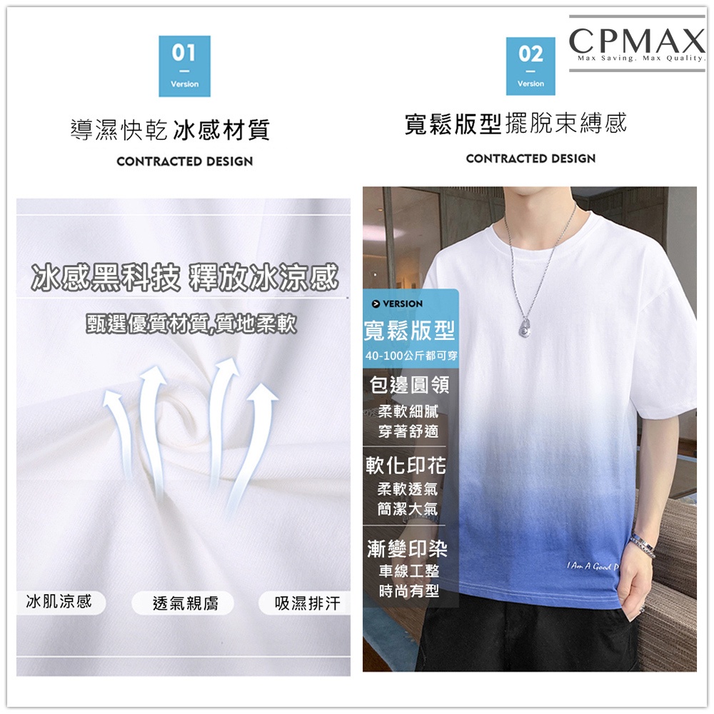 【CPMAX】T恤 男短袖 男上衣 男生衣著 舒適透氣 時尚漸變色圓領T 冰涼輕薄潮T 百搭寬鬆大尺碼t恤 【T172】