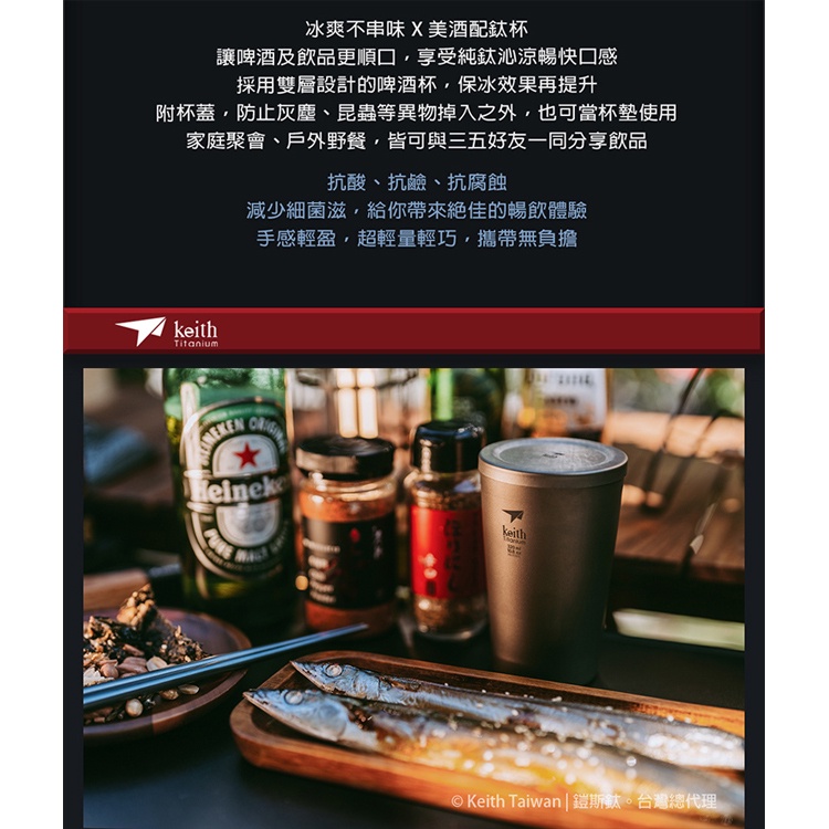 Keith 鎧斯鈦雙層啤酒鈦杯 320ml / Ti9221 雙層鈦杯 保溫杯 戶外露營 保溫 曲線 飲料果汁 啤 酒杯