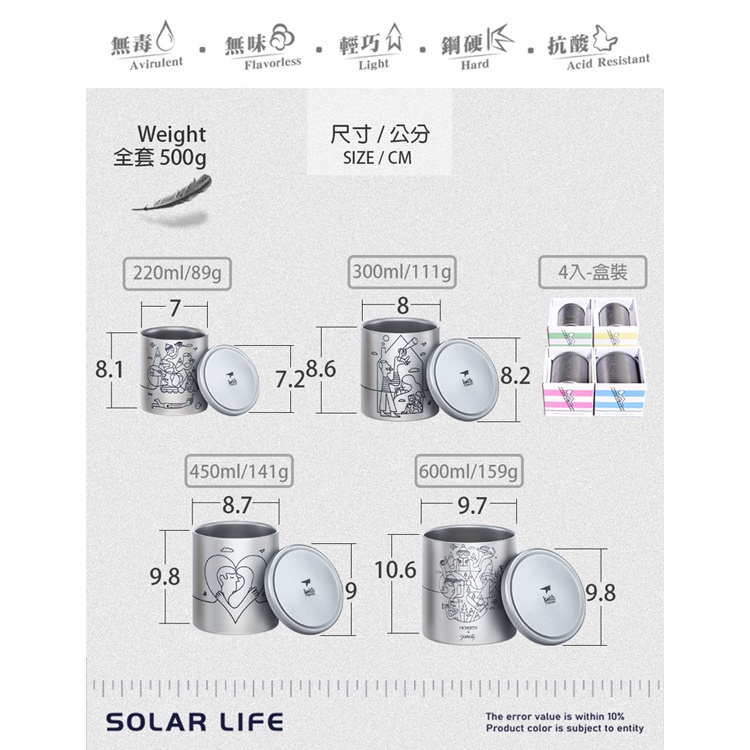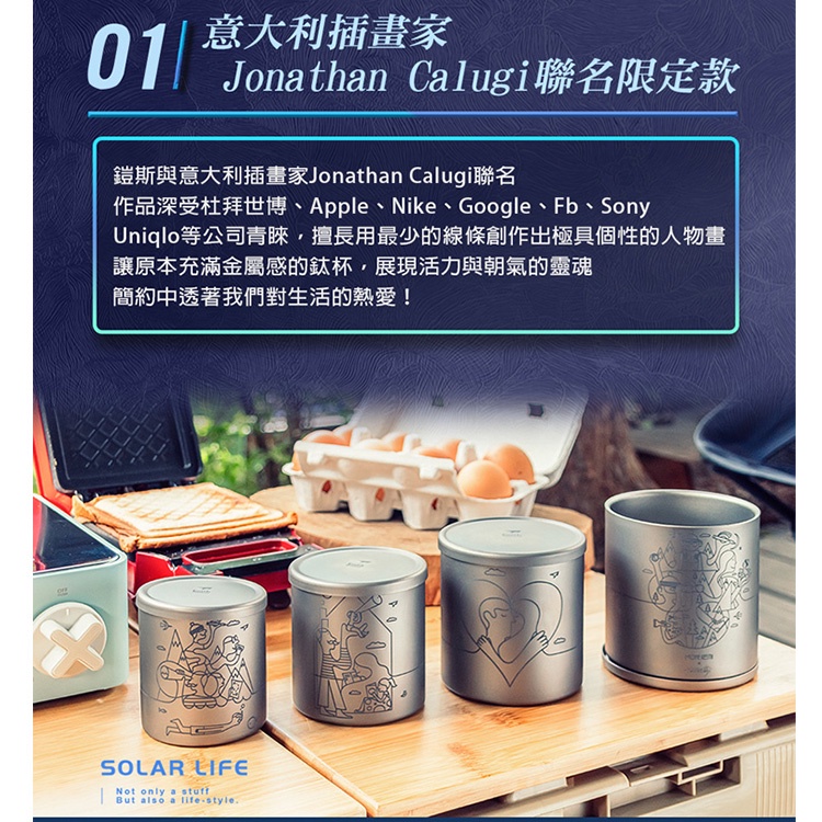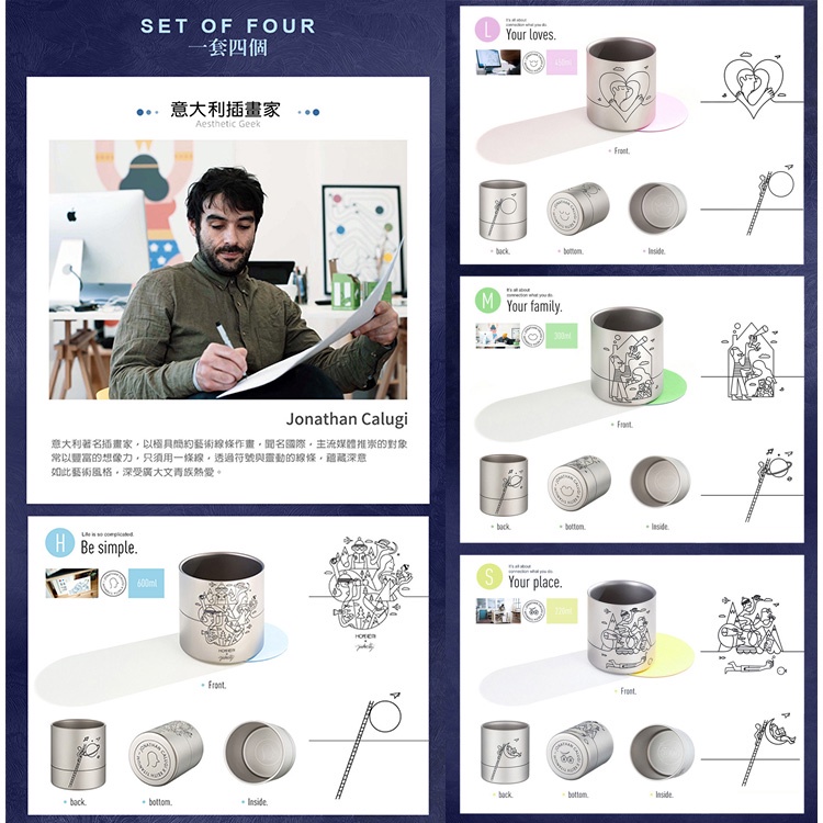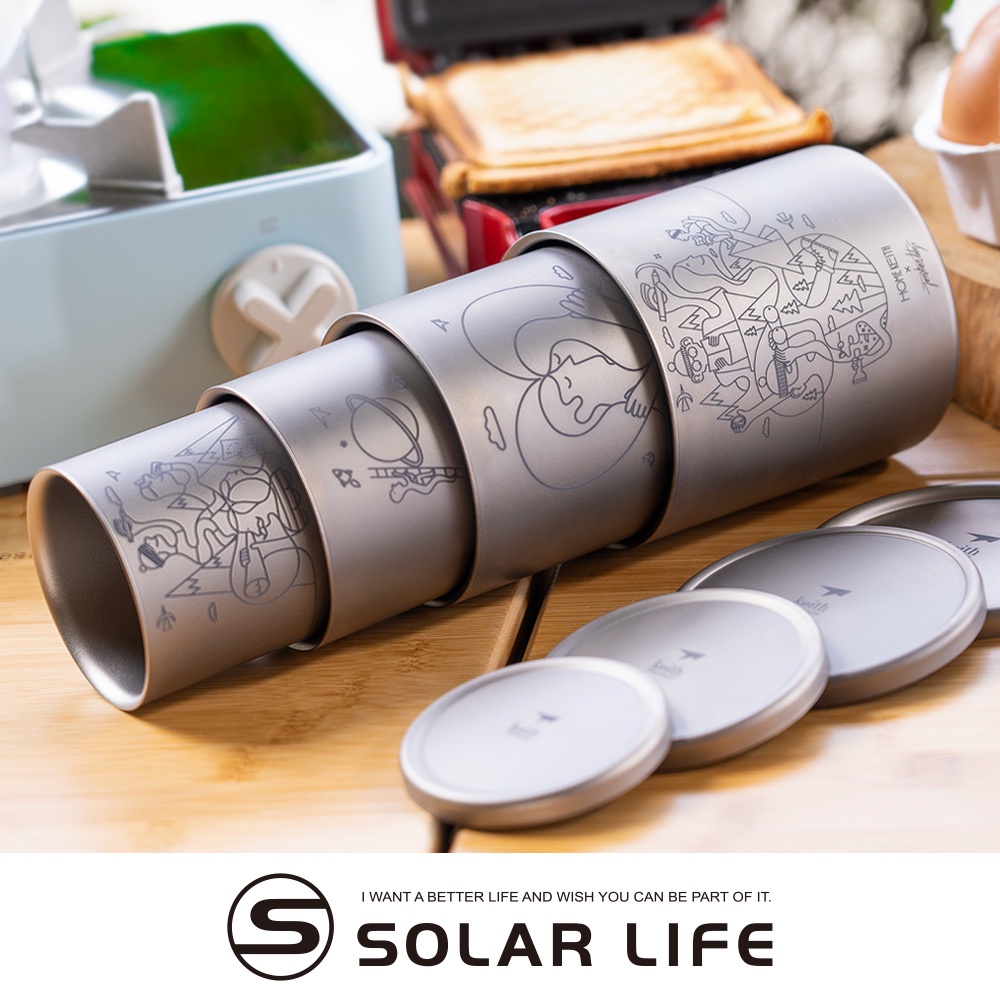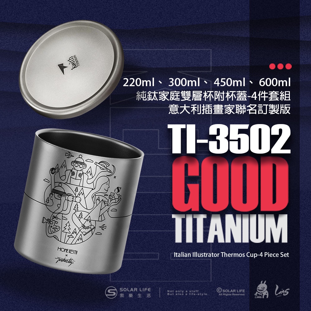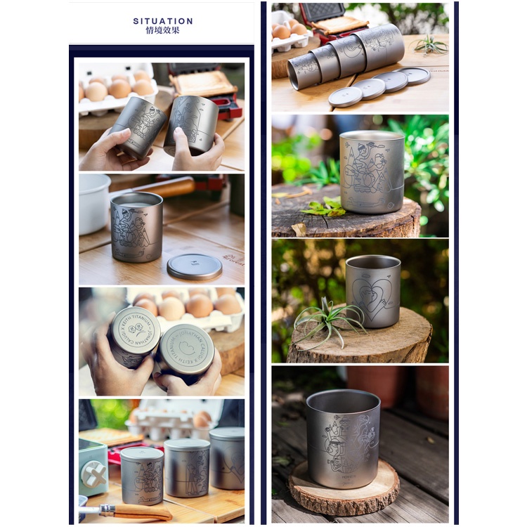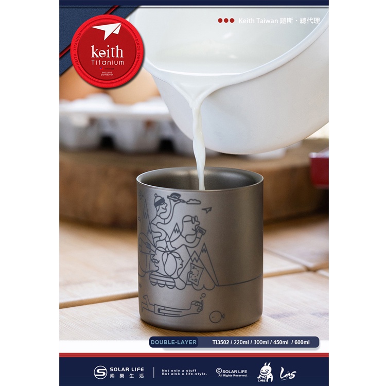 鎧斯Keith Ti3502 純鈦家庭雙層保溫杯附杯蓋-4件套組 意大利插畫家聯名訂製版.雙層鈦杯 純鈦保溫杯 隔熱斷熱