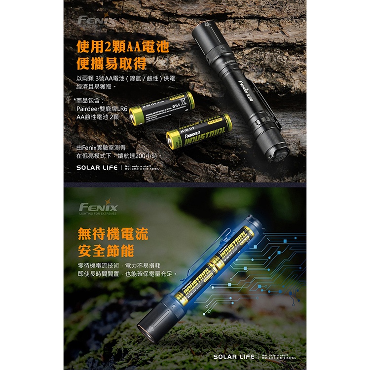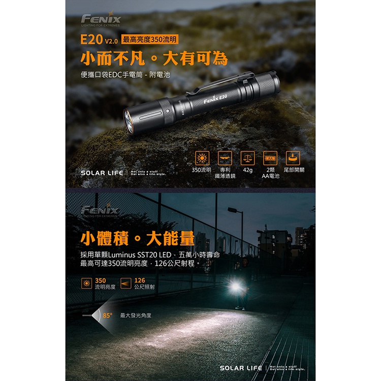 FENIX E20 V2.0 便攜EDC 手電筒 附電池 350流明 隨身筆型手電筒 防水LED4段 戰術手電筒 雙AA
