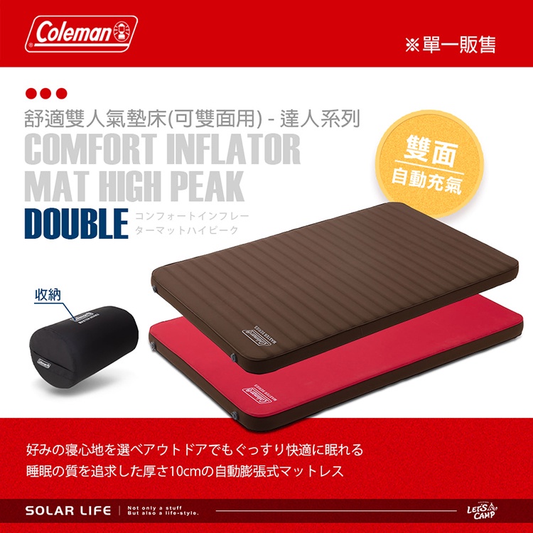 Coleman 達人舒適雙人氣墊床 CM-38773 雙面充氣睡墊 雙人露營睡墊 自動充氣床墊 加厚10cm 帳篷睡墊