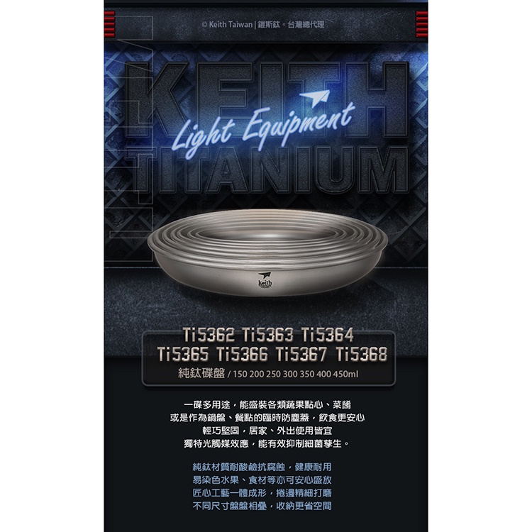 Keith 鎧斯純鈦碟盤 Ti5362 烤肉盤 鈦碟鈦盤 可堆疊收納 露營餐盤 登山碗 點心盤 沙拉圓盤 野營鐵盤 盤子