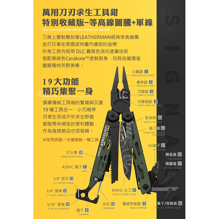 LEATHERMAN Signal Topo 工具鉗/軍綠等高線限定版贈收納套 832692 多功能工具鉗 戶外萬用刀