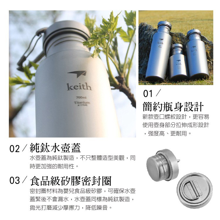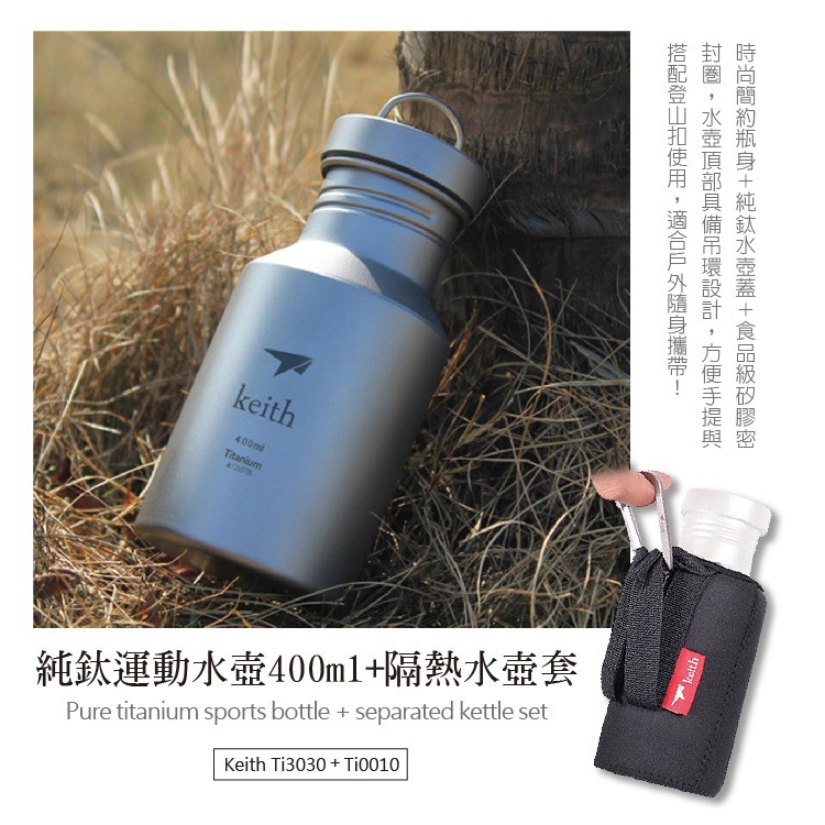 鎧斯Keith Ti3030 純鈦運動水壺400ml 附隔熱水壺套 居家戶外登山露營環保鈦水壺輕量大口徑隨手杯健身水瓶