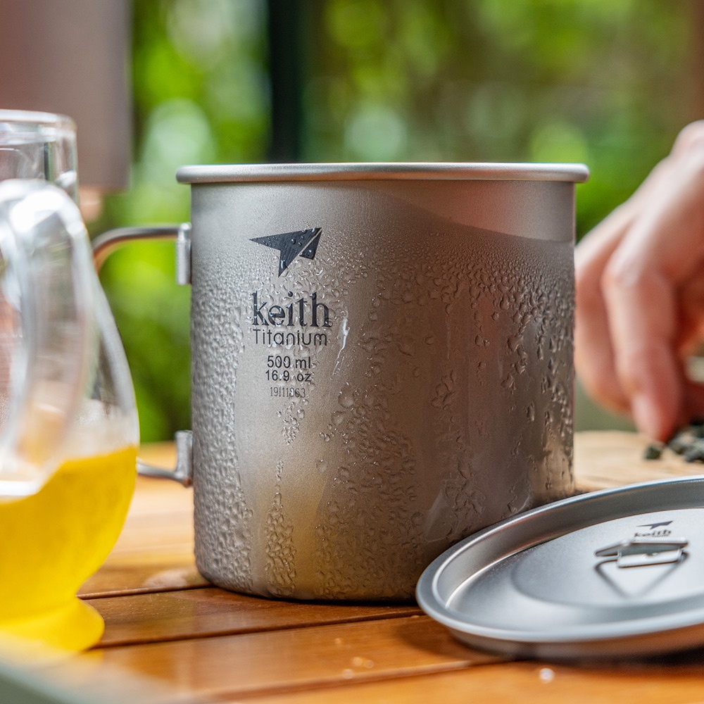 Keith 鎧斯鈦折疊單層鈦杯 附杯蓋 ( 全系列 ) 純鈦杯子 鈦金屬杯 登山鈦杯 露營鈦水杯 馬克杯 IRONMAN