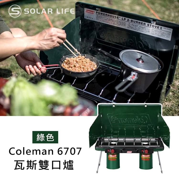 Coleman CM-6707J瓦斯雙口爐 / 綠 卡式瓦斯爐 行動瓦斯爐 高山快速爐 摺疊雙口爐 戶外露營野炊