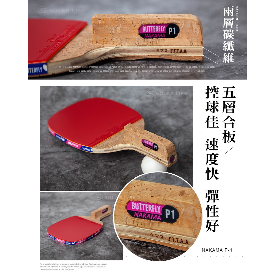 蝴蝶牌 BUTTERFLY碳纖維桌球拍正手板NAKAMA P-1 乒乓球拍 蝴蝶 球拍 桌球拍
