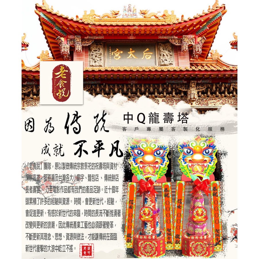 【老食說】中Q龍壽塔(4尺2) 壽桃壽麵壽桃塔神明祝壽拜拜宴王擺宴敬神禮佛供品點心