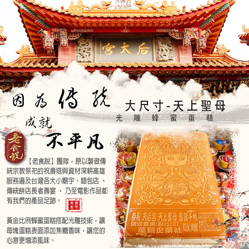 【老食說】天上聖母 大尺寸Q版 免費客製化 光雕蜂蜜蛋糕 壽桃壽麵壽桃塔神明祝壽拜拜宴王擺宴敬神禮佛供品點心 低溫宅配