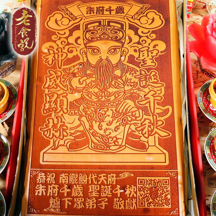 【老食說】朱府千歲 大尺寸Q版 免費客製化 光雕蜂蜜蛋糕 壽桃壽麵壽桃塔神明祝壽拜拜宴王擺宴敬神禮佛供品點心 低溫宅配