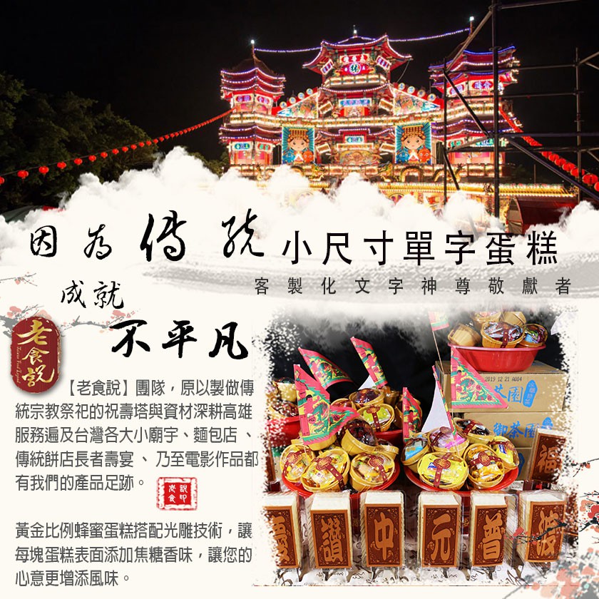 【老食說】 中元普渡 小尺寸10單字 光雕蜂蜜蛋糕 壽桃壽麵壽桃塔神明祝壽拜拜宴王擺宴敬神禮佛供品點心