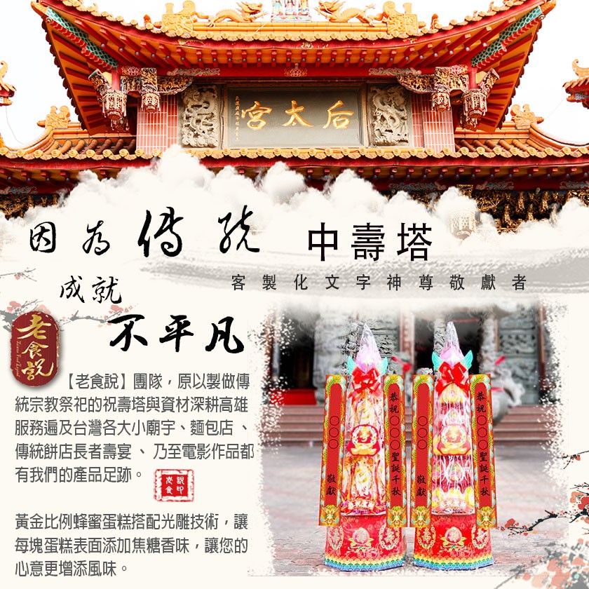 【老食說】中壽塔(2尺9) 壽桃 壽麵 壽桃塔 神明祝壽 拜拜 宴王 擺宴 敬神禮佛 供品點心 壽塔 拜拜蛋糕 神尊彩繪