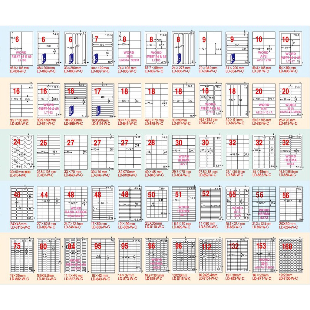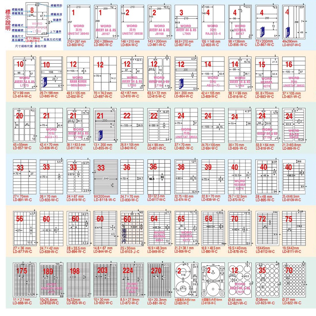 龍德 A4三用電腦標籤 白色 33格/36格/39格/40格 適用雷射/噴墨/影印 1000張 /箱