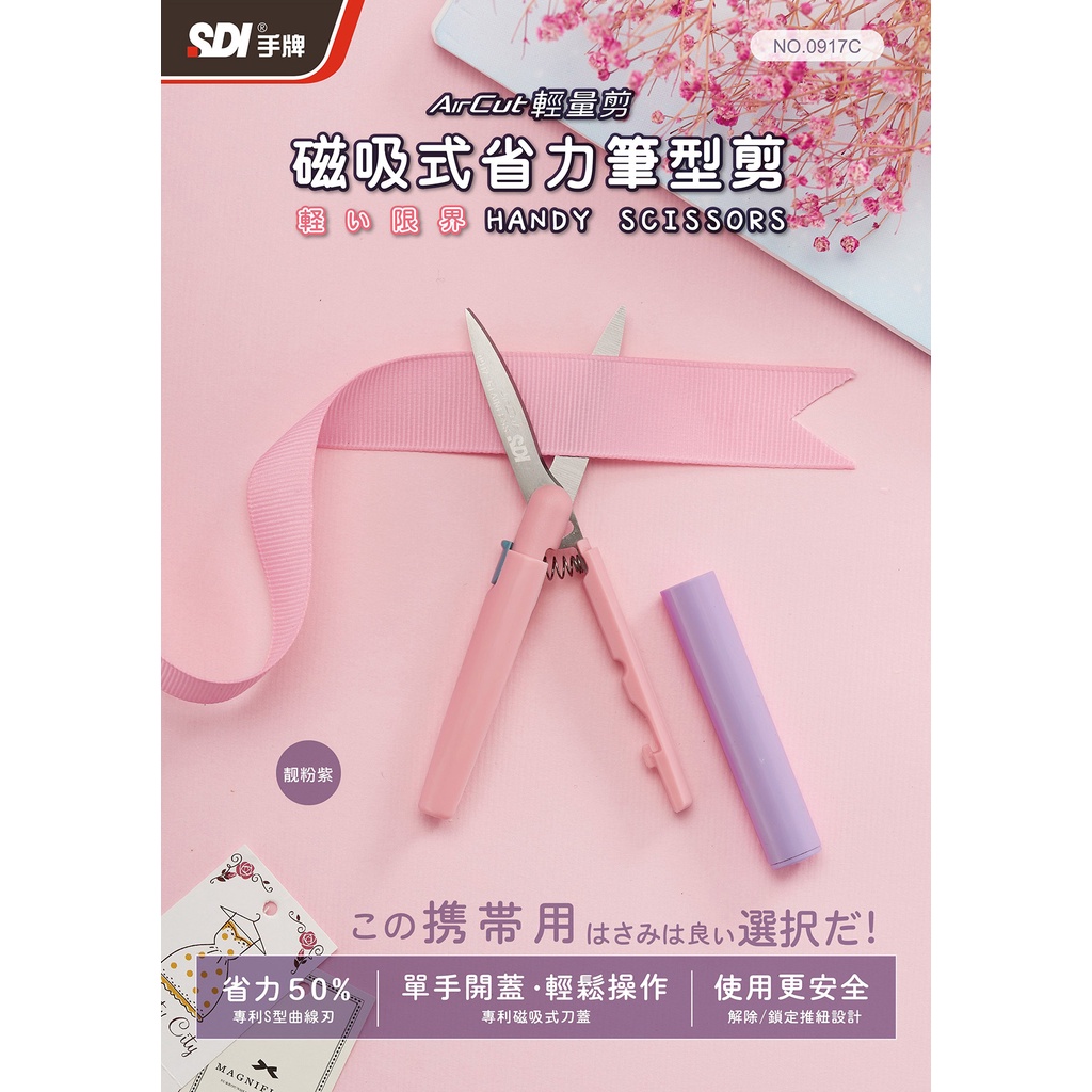 SDI 手牌 輕量剪 磁吸式省力筆型剪刀 顏色隨機出貨 /支 0917C