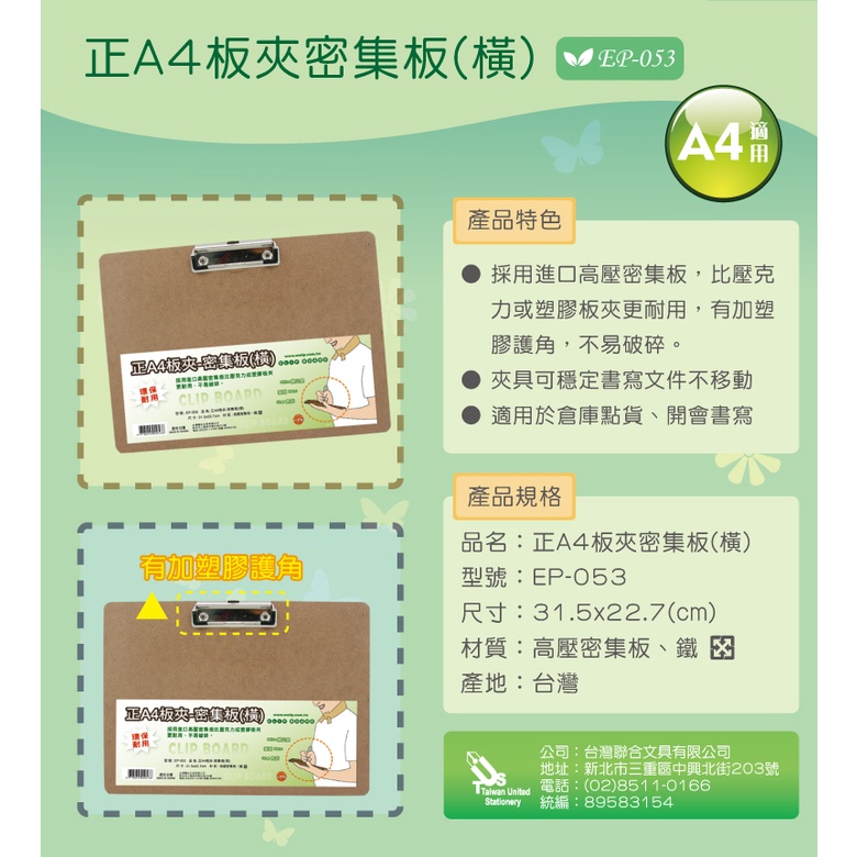 W.I.P 正A4 密集板 板夾 事務板夾 文件板夾 不易破碎 /個 直式 EP-052、橫式 EP-053