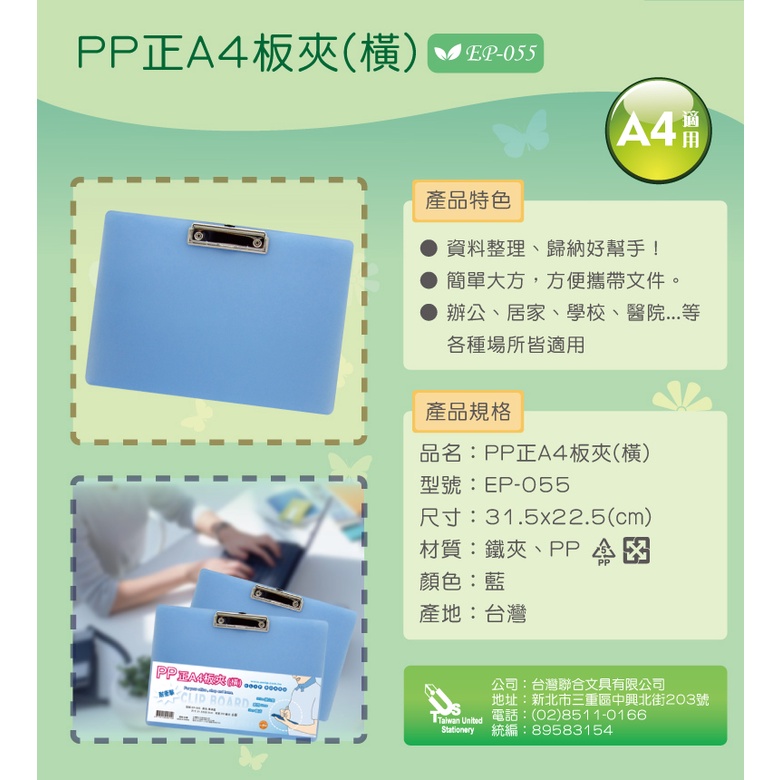 W.I.P 正A4 PP 板夾 事務板夾 文件板夾 藍色 /個 直式 EP-045S