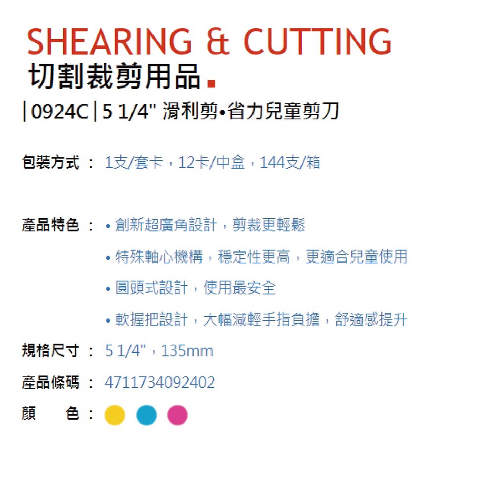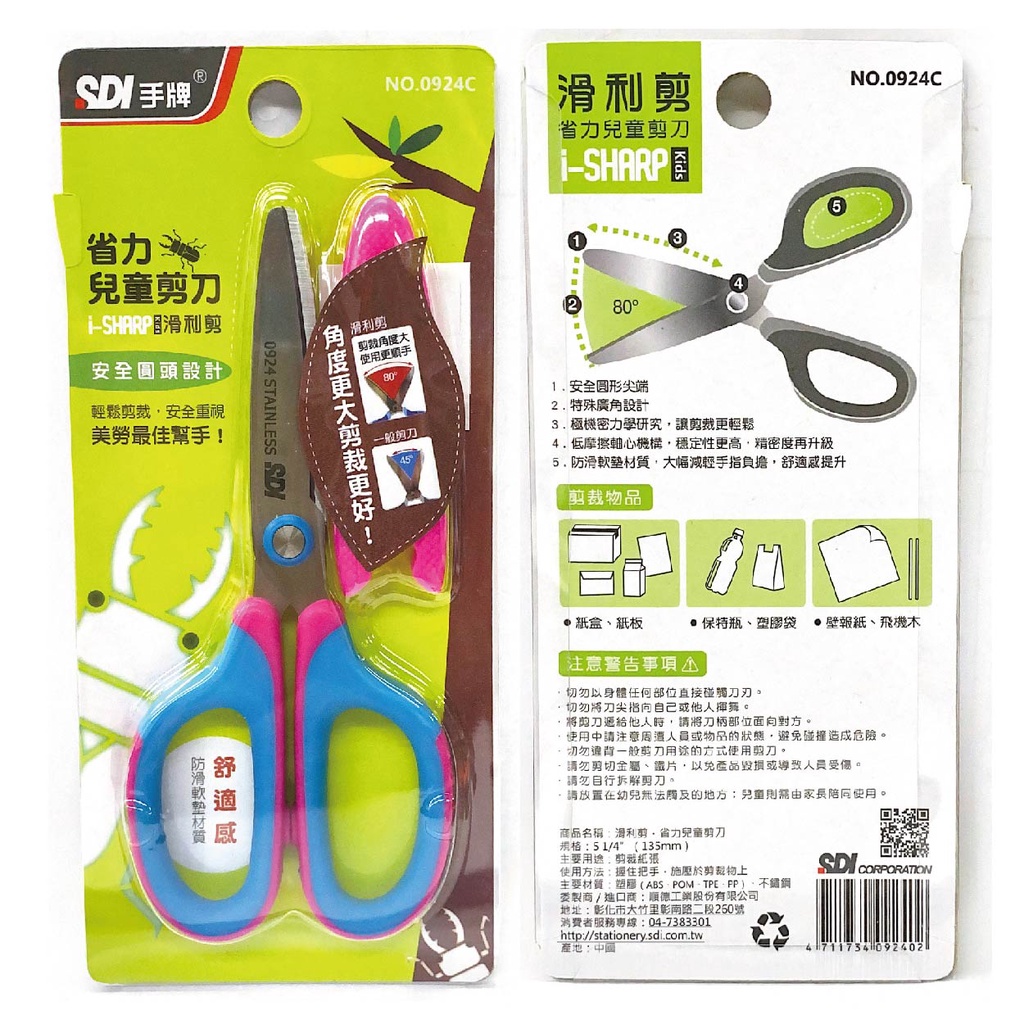 SDI手牌 5 1/4" 135mm 滑利剪 省力兒童剪刀 顏色隨機出貨 支 / 0924C