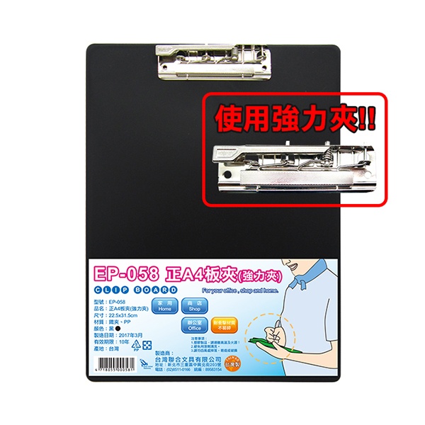 W.I.P 正A4 板夾(強力夾)直式 事務板夾 文件板夾 黑色 22.5x31.5cm /個 EP-058
