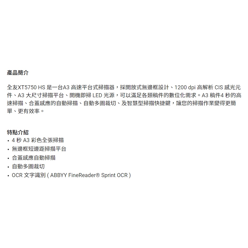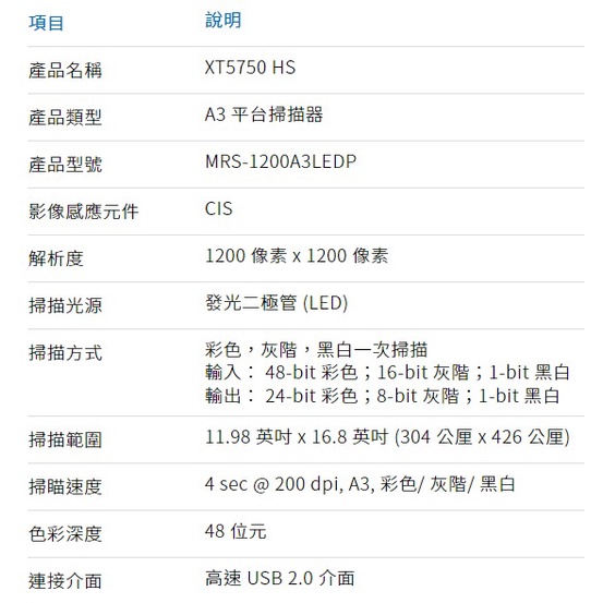 MICROTEK 全友 實用型高速A3平台 掃描器 掃描儀 /台 XT5750 HS