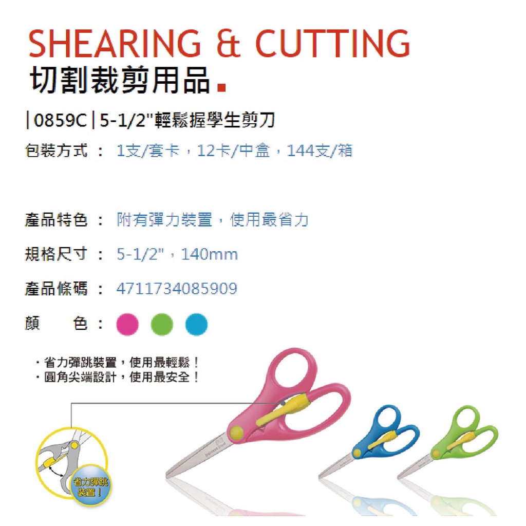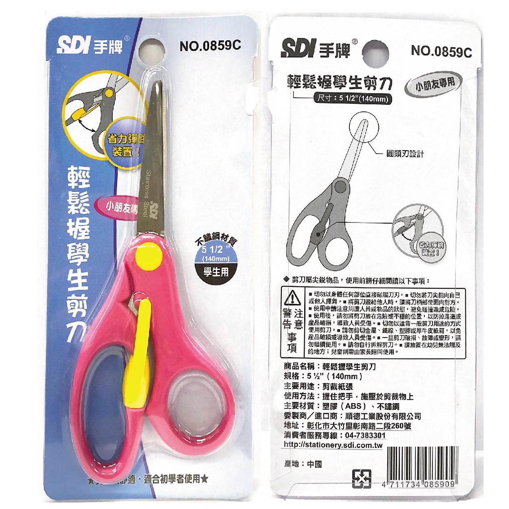 SDI 手牌 5 1/2吋140mm 輕鬆握 學生剪刀 顏色隨機出貨 / 支 0859C