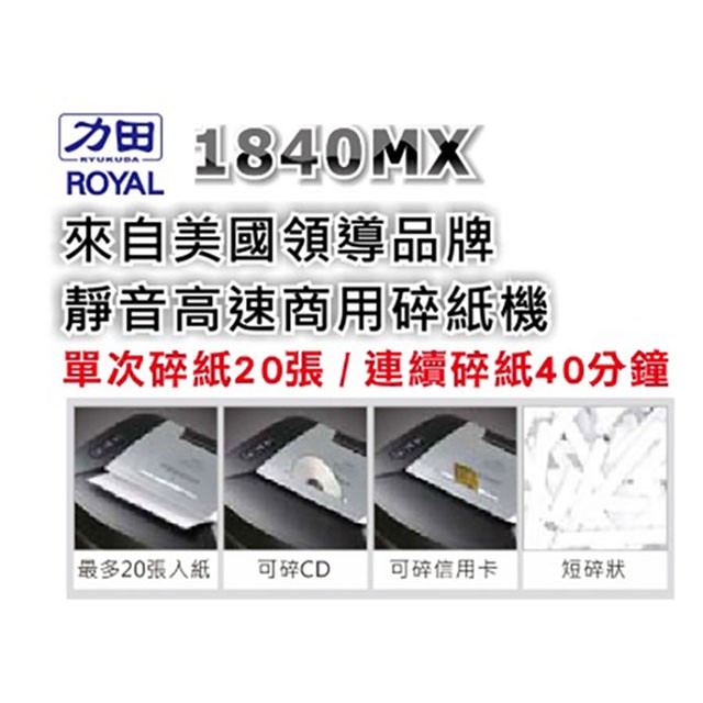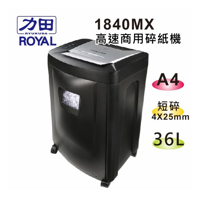 力田-ROYAL 1840MX 商用高速碎紙機 (符合RoHS無毒塑料)連續碎紙40分 單次碎紙20張 免運