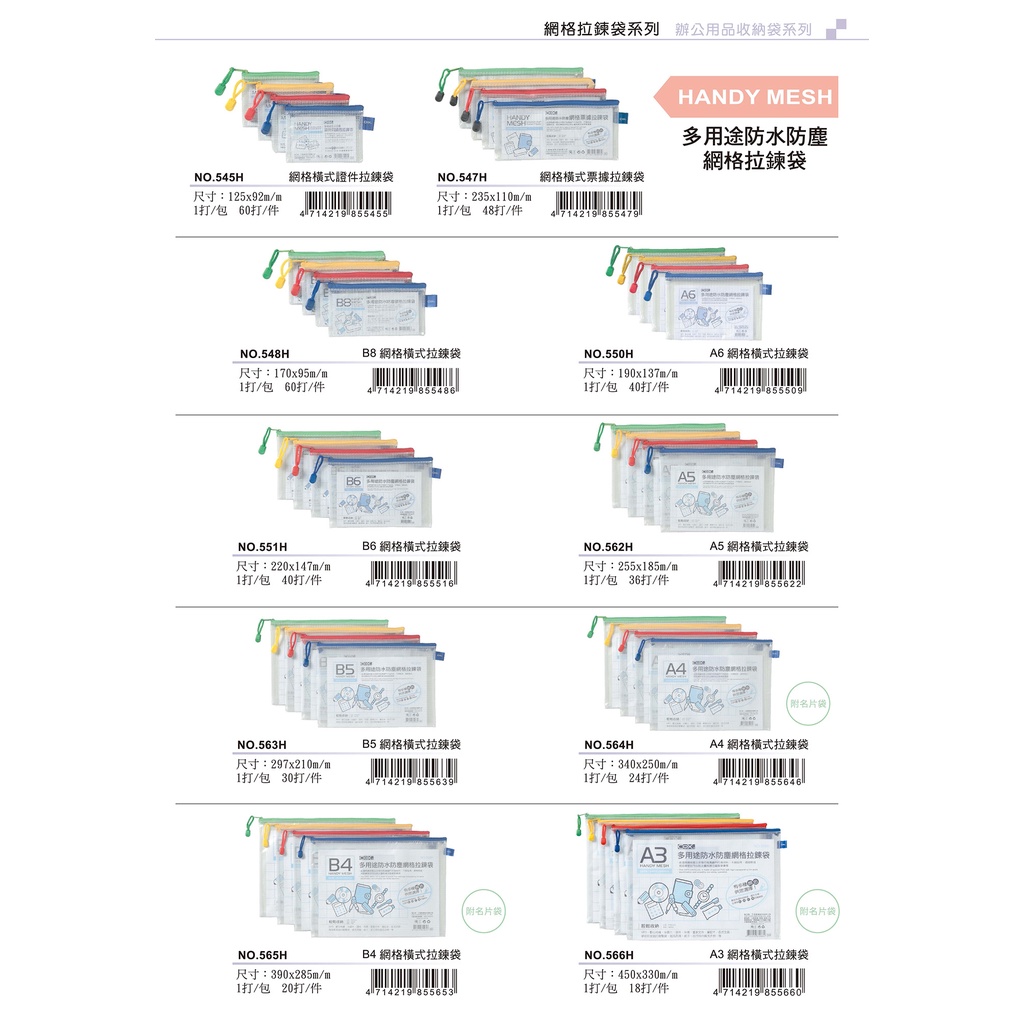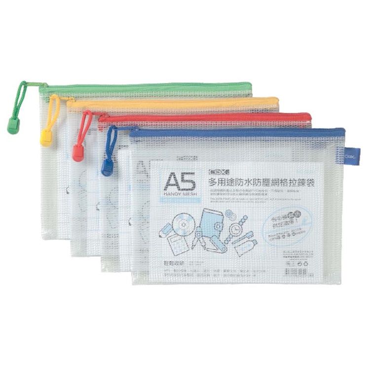 COX 三燕 B6/A5/B5 網格橫式拉鏈袋 顏色隨機 12入 /打 NO.551H、562H、563H