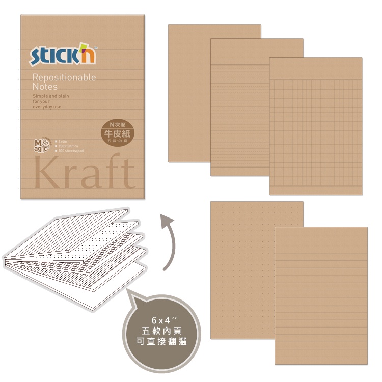 N次貼 61335 牛皮紙可再貼便條紙 6"x4"(152x101mm) 100張/5款/本