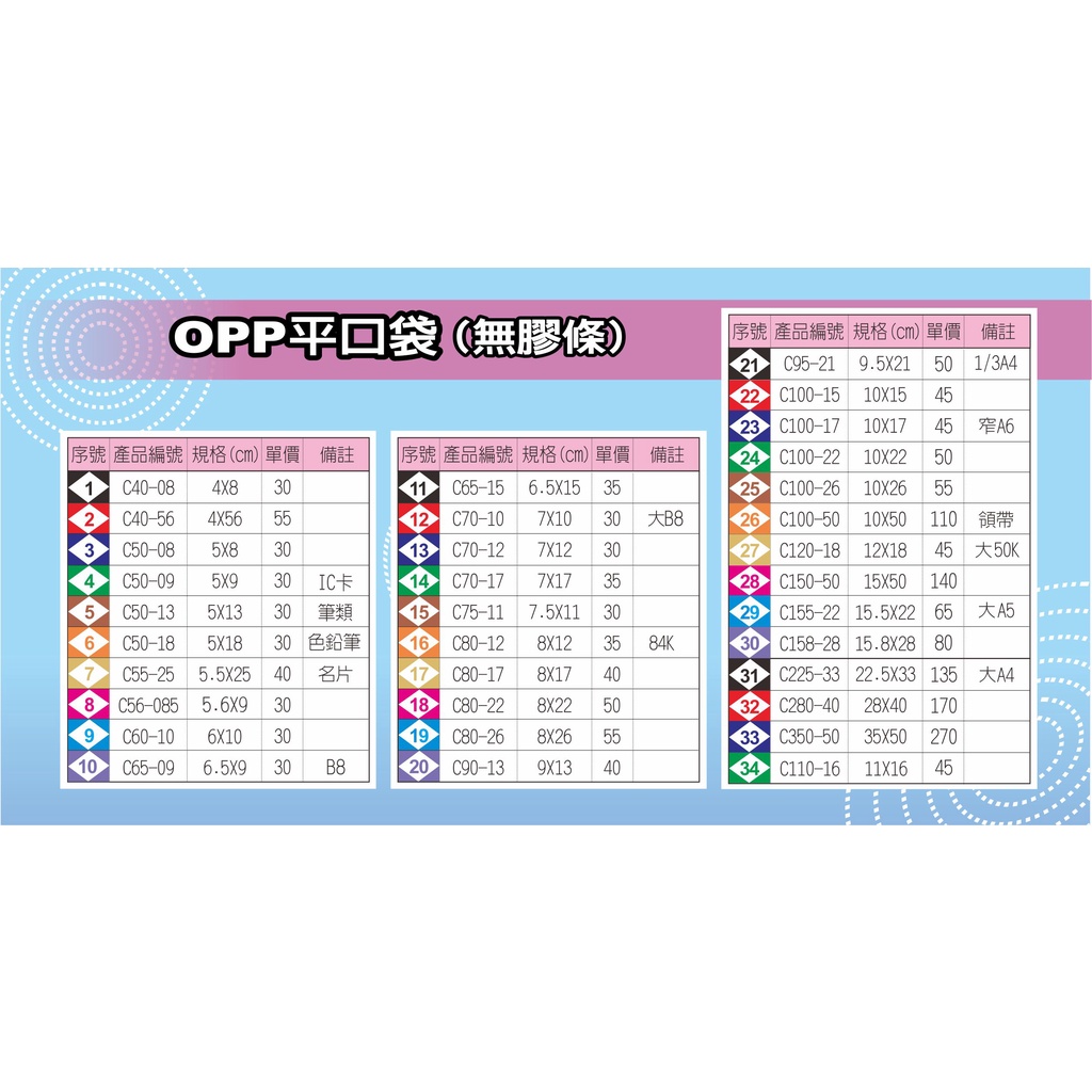 鶴屋 #11~#20 OPP 平口袋(無膠條)包裝袋 透明 多種規格 100入 /包